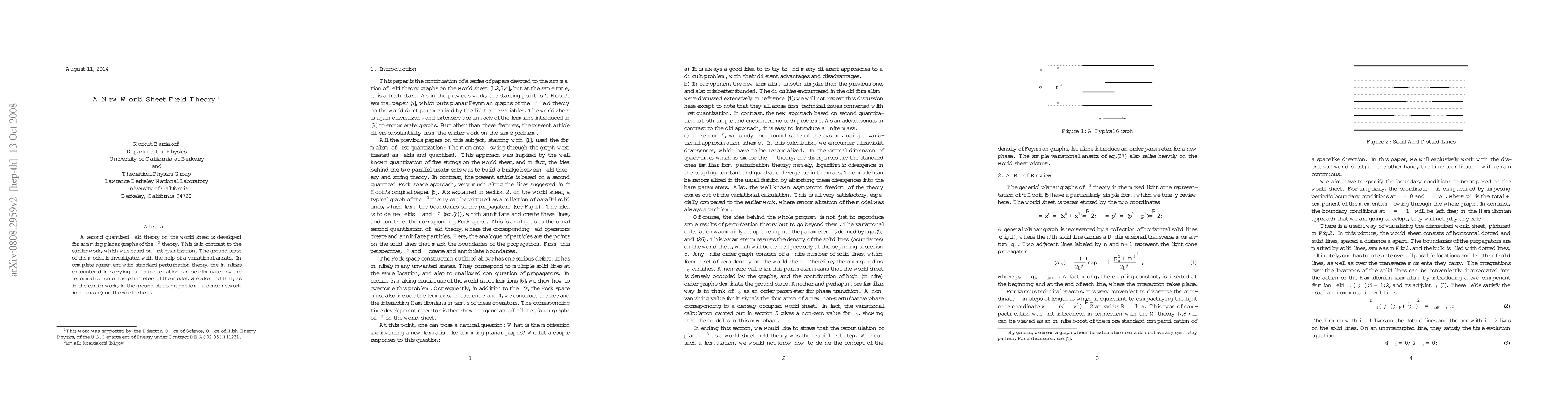 A second quantized field theory on the world sheet is developed for summing planar graphs of the phi^3 theory. This is in contrast to the earlier work, which was based on first quantization. The ground state of the model is investigated with the help of a variational ansatz. In complete agreement with standard perturbation theory, the infinities encountered in carrying out this calculation can be eliminated by the renormalization of the parameters of the model. We also find that, as in the earlier work, in the ground state, graphs form a dense network (condensate) on the world sheet.