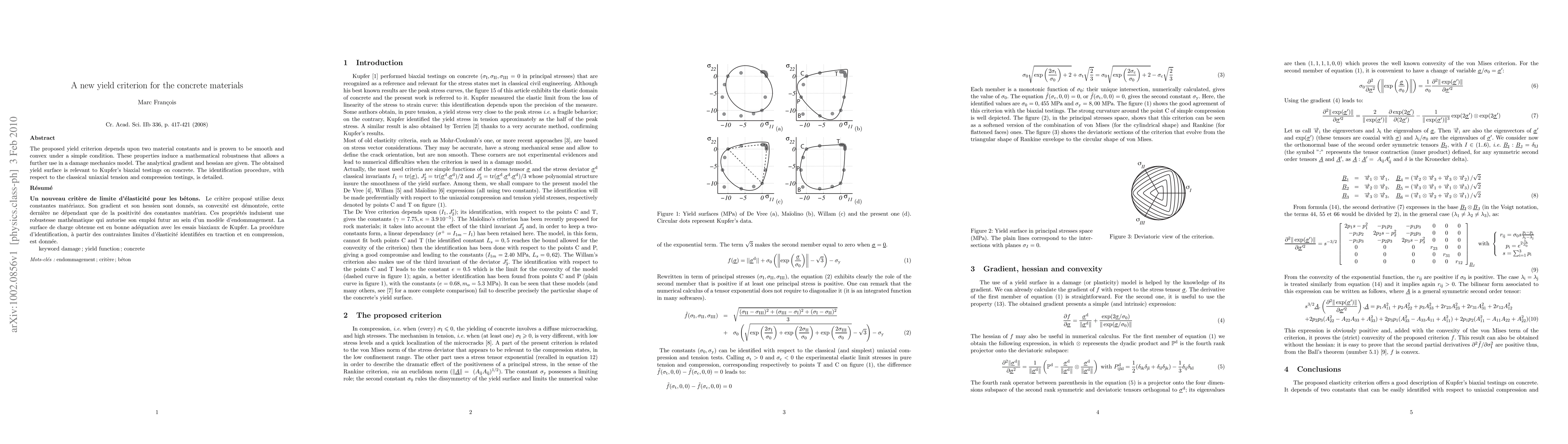 A new yield criterion for concrete materials has been proposed, showing mathematical robustness and relevance to real-world testing conditions, with implications for damage mechanics models.