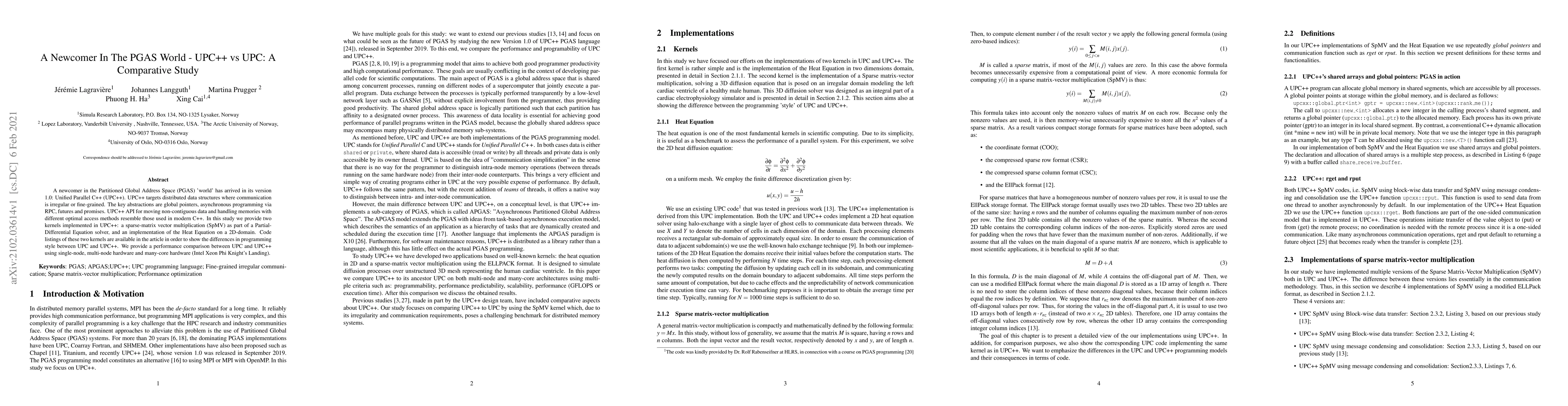 This paper introduces UPC++, a new version of Unified Parallel C++ for PGAS programming, focusing on irregular or fine-grained communication. It compares UPC++ with UPC, showcasing two kernels: SpMV and Heat Equation, and provides a performance analysis across single-node, multi-node, and many-core hardware.