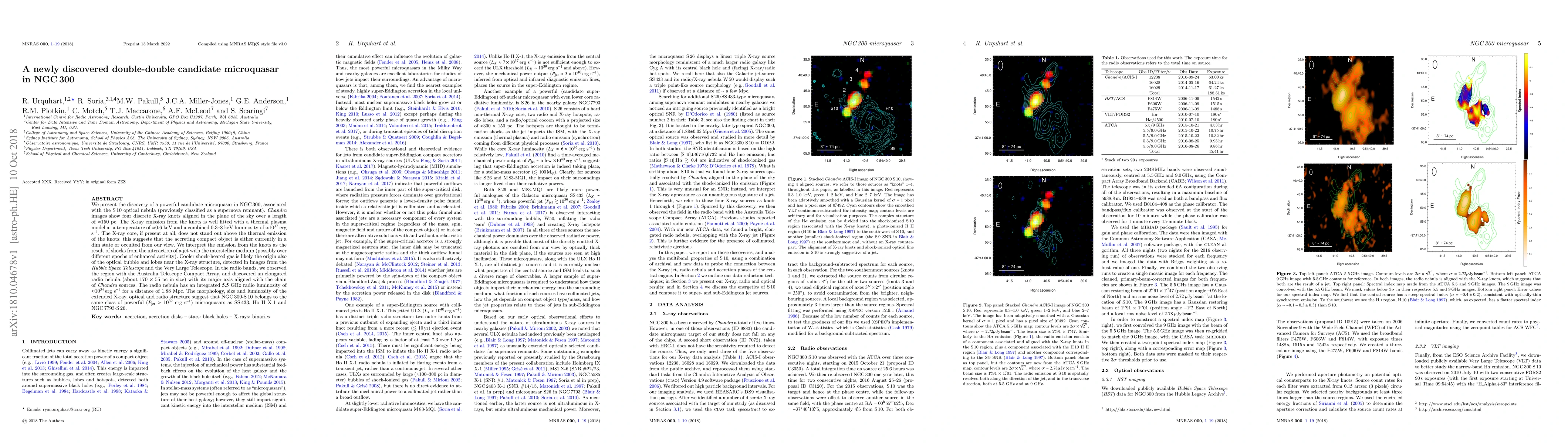 We present the discovery of a powerful candidate microquasar in NGC 300, associated with the S 10 optical nebula (previously classified as a supernova remnant). Chandra images show four discrete X-ray knots aligned in the plane of the sky over a length of $\approx$150 pc. The X-ray emission from the knots is well fitted with a thermal plasma model at a temperature of $\approx$0.6 keV and a combined 0.3-8 keV luminosity of $\approx$10$^{37}$ erg s$^{-1}$. The X-ray core, if present at all, does not stand out above the thermal emission of the knots: this suggests that the accreting compact object is either currently in a dim state or occulted from our view. We interpret the emission from the knots as the result of shocks from the interaction of a jet with the interstellar medium (possibly over different epochs of enhanced activity). Cooler shock-heated gas is likely the origin also of the optical bubble and lobes near the X-ray structure, detected in images from the Hubble Space Telescope and the Very Large Telescope. In the radio bands, we observed the region with the Australia Telescope Compact Array, and discovered an elongated radio nebula (about 170 $\times$ 55 pc in size) with its major axis aligned with the chain of Chandra sources. The radio nebula has an integrated 5.5 GHz radio luminosity of $\approx$10$^{34}$ erg s$^{-1}$ for a distance of 1.88 Mpc. The morphology, size and luminosity of the extended X-ray, optical and radio structure suggest that NGC 300-S 10 belongs to the same class of powerful ($P_{\rm jet} > 10^{39}$ erg s$^{-1}$) microquasars as SS 433, Ho II X-1 and NGC 7793-S 26.