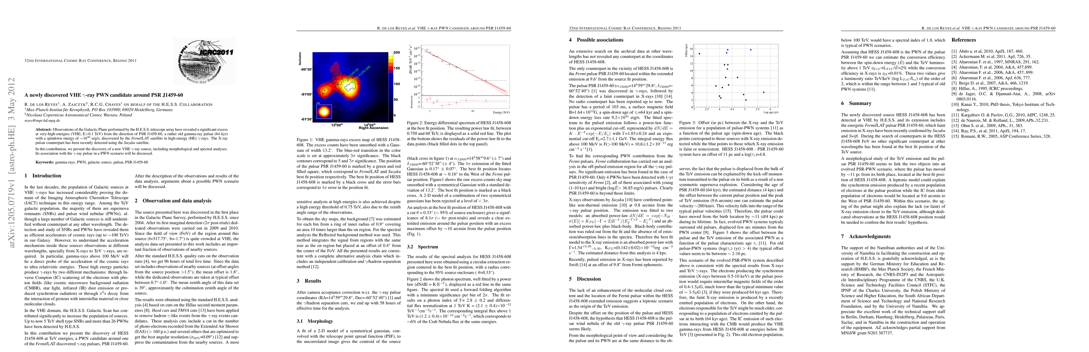 Observations of the Galactic Plane performed by the H.E.S.S. telescope array have revealed a significant excess at very-high-energies (VHE; E>0.1 TeV) from the direction of PSR J1459-60, a rather old gamma-ray pulsar (64 kyr) with a spindown energy of ~10^36 erg/s, discovered by the Fermi/LAT satellite in high-energy (HE) gamma-rays. The X-ray pulsar counterpart has been recently detected using the Suzaku satellite. In this contribution, we present the discovery of a new VHE gamma-ray source, including morphological and spectral analyses. Its association with the gamma-ray pulsar in a PWN scenario will be discussed.