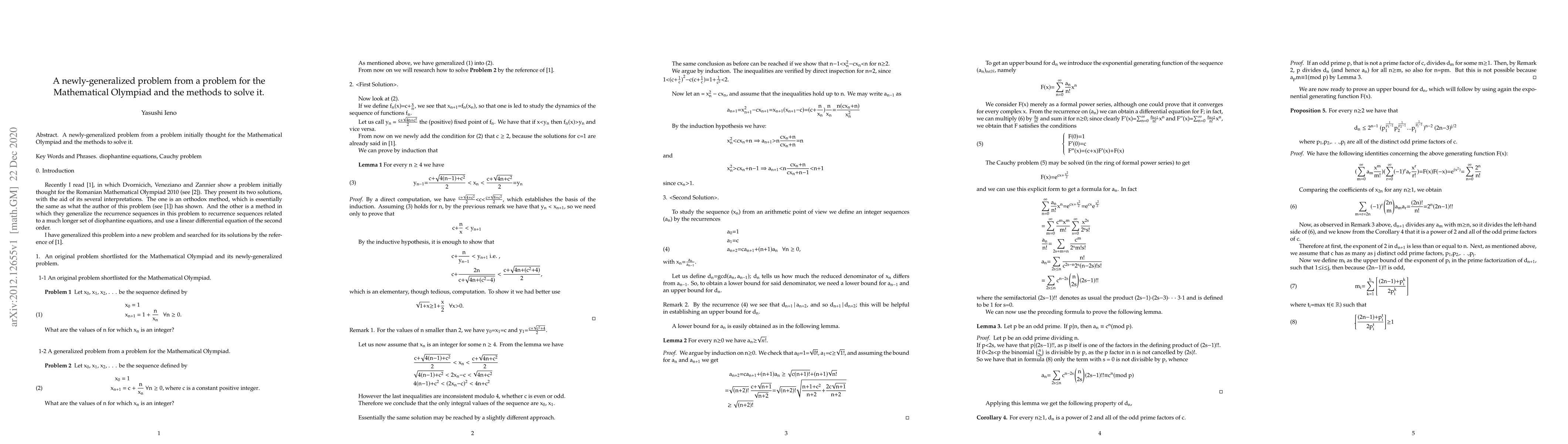A newly-generalized problem from a problem initially thought for the Mathematical Olympiad and the methods to solve it.