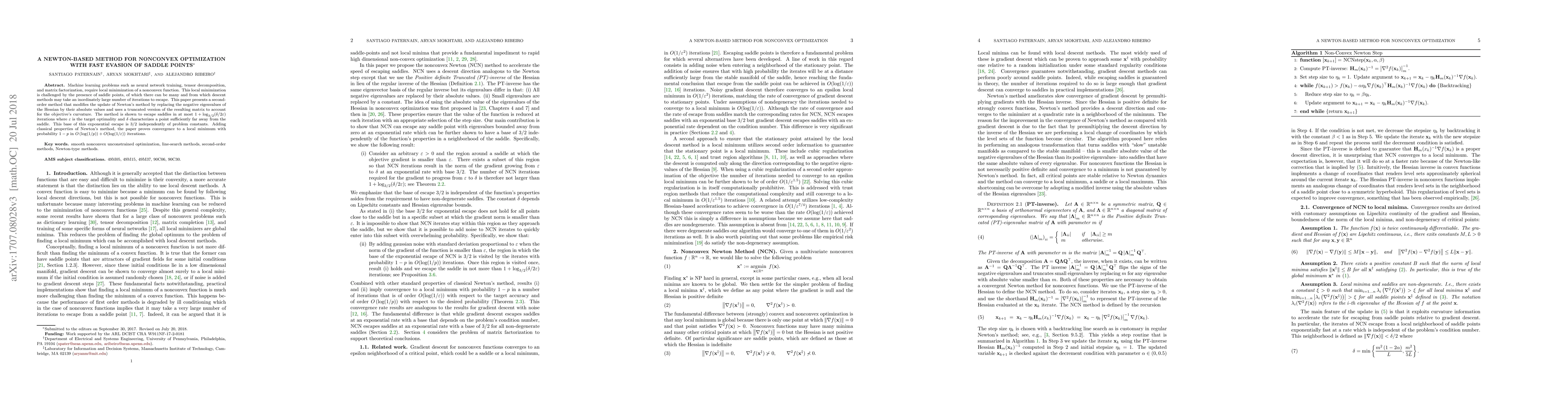 This paper introduces a modified Newton's method for nonconvex optimization that rapidly escapes saddle points, a common challenge in machine learning tasks like neural network training. The method uses absolute values of negative Hessian eigenvalues and a truncated matrix to guide updates, ensuring escape from saddle points in at most 1 + log_(3/2)(δ/2ε) iterations, with δ and ε characterizing the saddle point and target accuracy, respectively. The approach guarantees convergence to a local minimum with high probability in O(log(1/p)) + O(log(1/ε)) iterations, offering significant improvements in efficiency for nonconvex optimization problems.