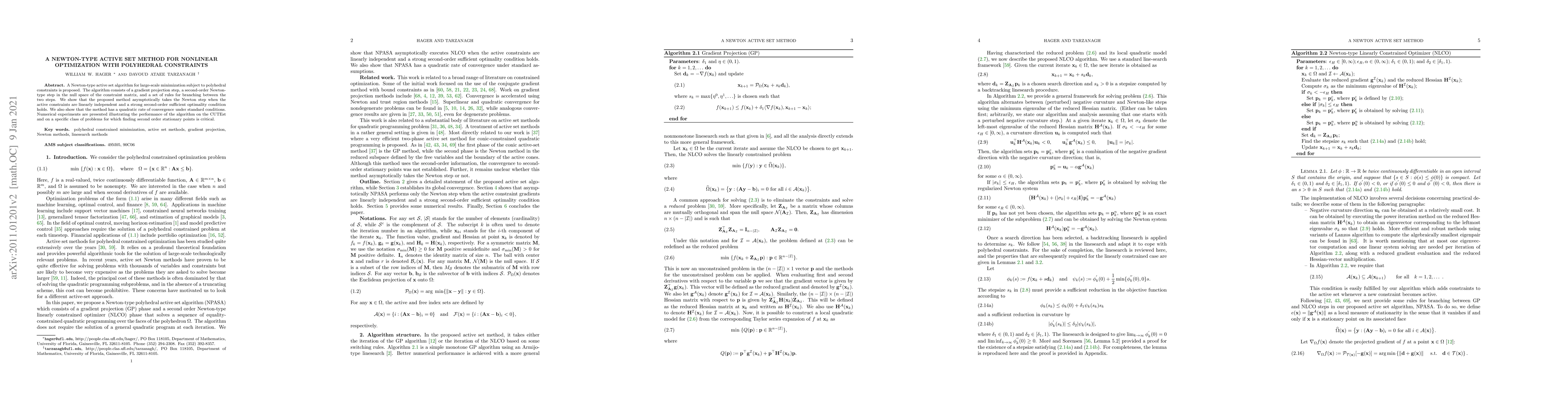 Researchers propose a new method for optimizing large-scale problems with polyhedral constraints, showing it has a quadratic rate of convergence and asymptotically takes the Newton step under certain conditions.