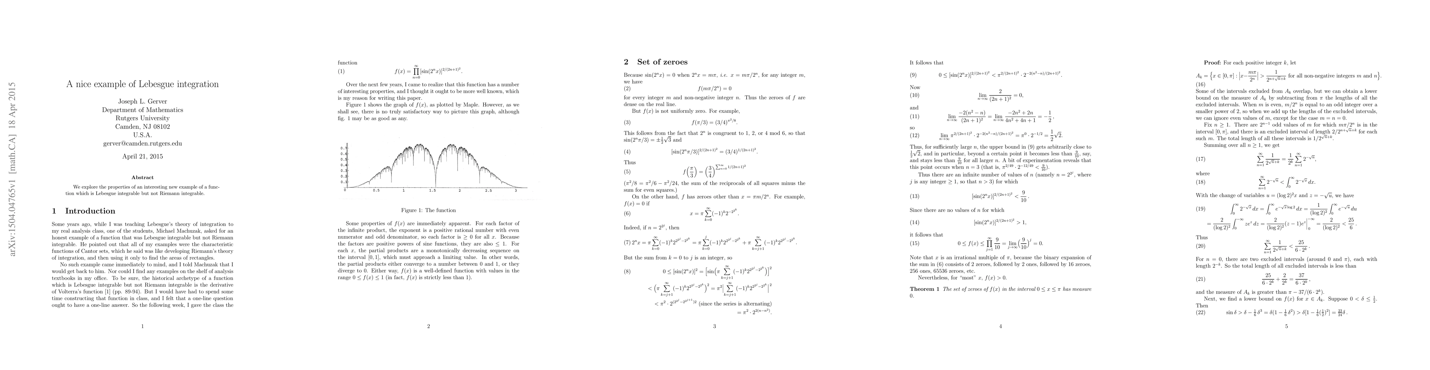 This paper explores a new function that is Lebesgue integrable but not Riemann integrable, shedding light on the differences between these two types of integration.