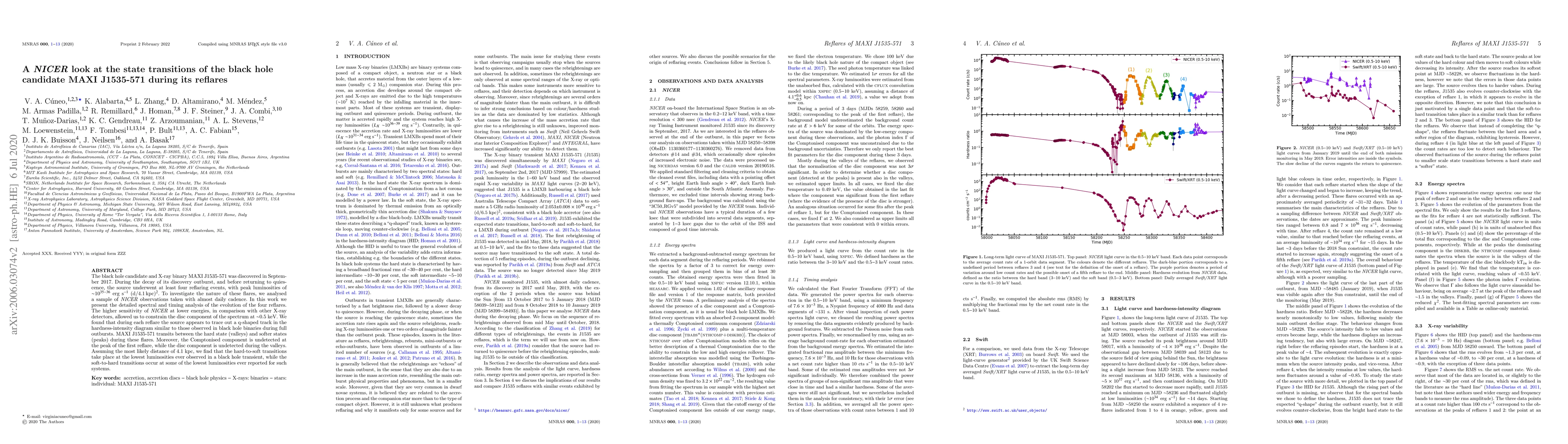 This paper analyzes the spectral and timing evolution of four reflares in the black hole candidate MAXI J1535-571 using NICER observations, revealing a q-shaped track in the hardness-intensity diagram. The study finds that the source transitions between hard and soft states at unusually low luminosities, providing new insights into black hole state transitions.