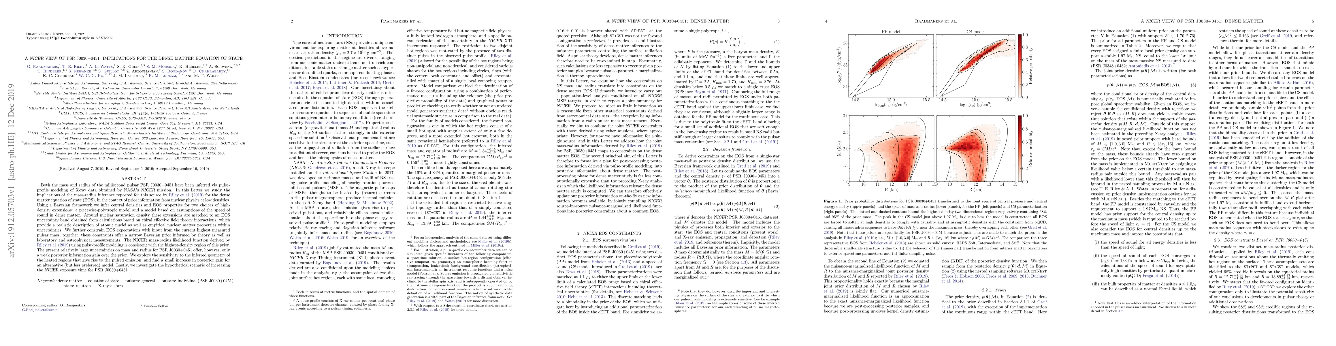 This paper uses NICER data to infer the mass and radius of the millisecond pulsar PSR J0030+0451, exploring implications for the dense matter equation of state (EOS). The study finds that the NICER mass-radius likelihood is consistent with high-density EOS models but offers limited posterior information gain due to current uncertainties.