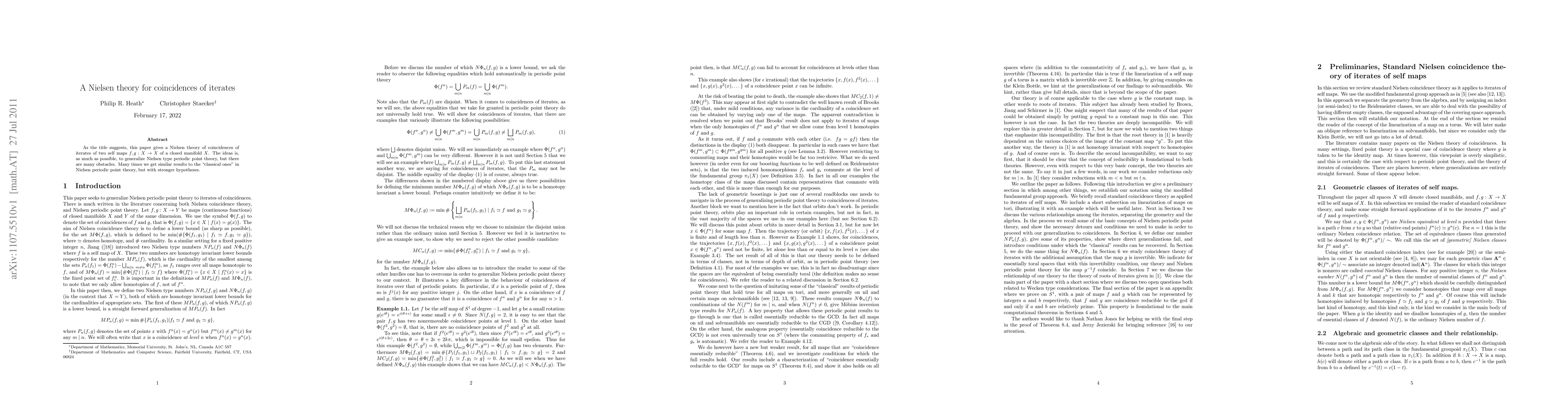 The paper introduces a Nielsen theory for coincidences of iterates, defining essential reducibility and providing conditions under which pairs of maps reduce to the gcd, extending periodic point theory concepts to the coincidence setting.
