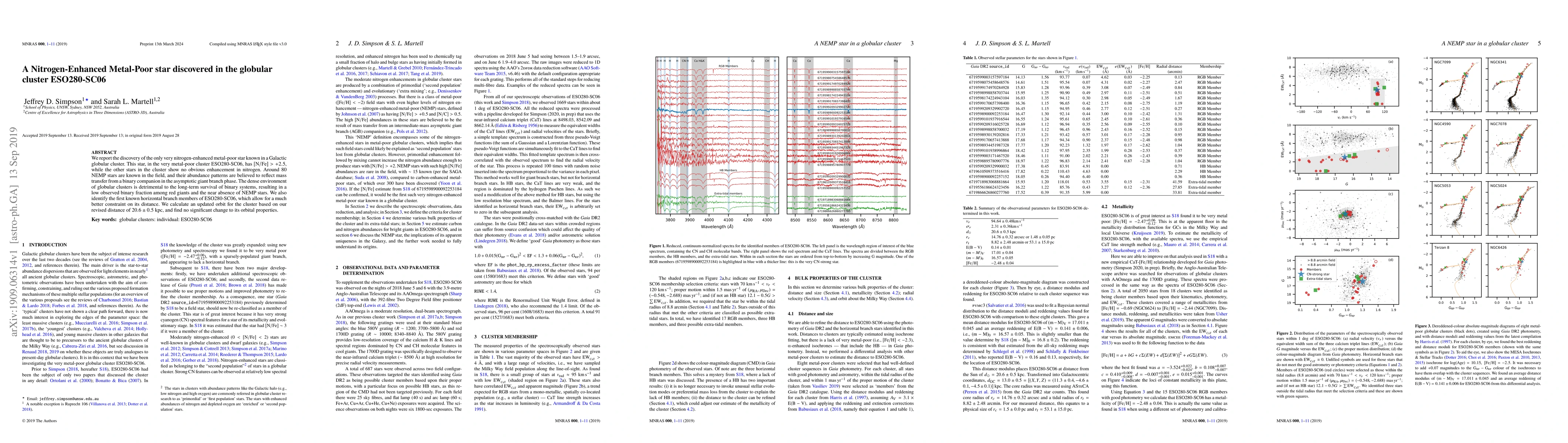 This paper reports the discovery of a unique nitrogen-enhanced metal-poor (NEMP) star in the globular cluster ESO280-SC06, contrasting with the lack of nitrogen enhancement in other cluster stars. The NEMP star's abundance pattern suggests mass transfer from a binary companion, challenging the typical low binary fraction in dense globular clusters.