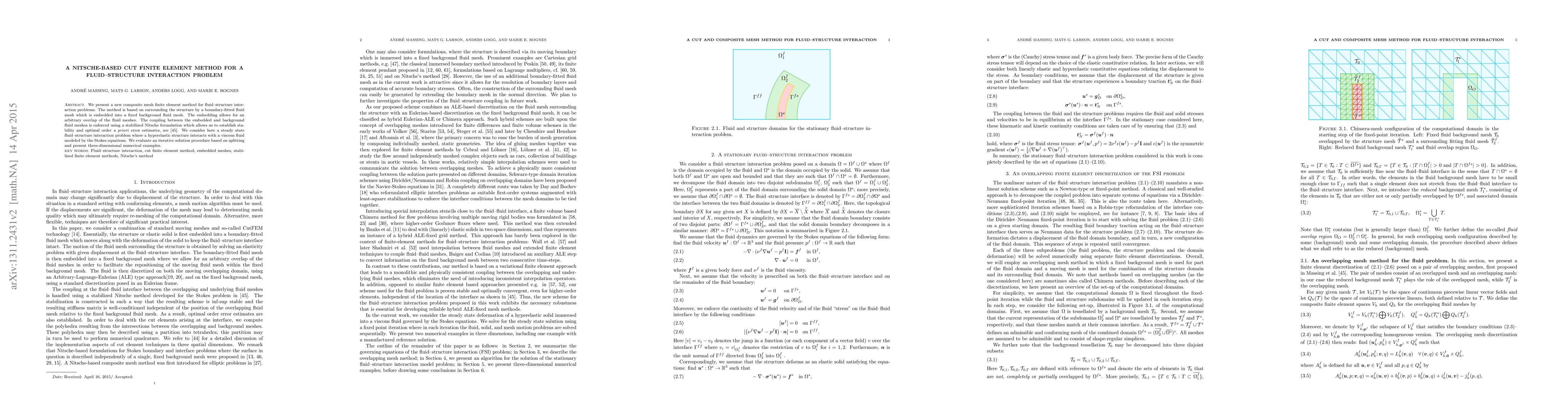 This paper introduces a Nitsche-based cut finite element method for fluid-structure interaction problems, embedding a boundary-fitted fluid mesh into a fixed background mesh with an arbitrary overlap. The coupling is stabilized using a Nitsche formulation, ensuring stability and optimal error estimates.