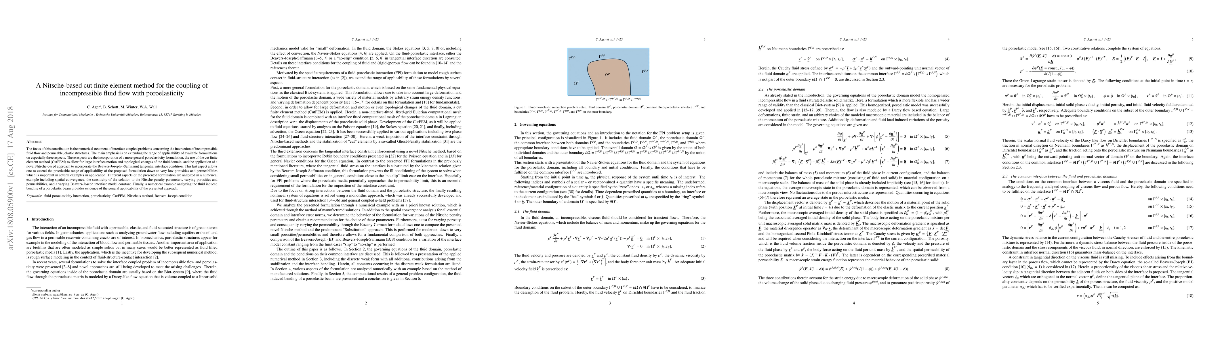 The focus of this contribution is the numerical treatment of interface coupled problems concerning the interaction of incompressible fluid flow and permeable, elastic structures. The main emphasis is on extending the range of applicability of available formulations on especially three aspects. These aspects are the incorporation of a more general poroelasticity formulation, the use of the cut finite element method (CutFEM) to allow for large interface motion and topological changes of the fluid domain, and the application of a novel Nitsche-based approach to incorporate the Beavers-Joseph (-Saffmann) tangential interface condition. This last aspect allows one to extend the practicable range of applicability of the proposed formulation down to very low porosities and permeabilities which is important in several examples in application. Different aspects of the presented formulation are analyzed in a numerical example including spatial convergence, the sensitivity of the solution to the Nitsche penalty parameters, varying porosities and permeabilities, and a varying Beavers-Joseph interface model constant. Finally, a numerical example analyzing the fluid induced bending of a poroelastic beam provides evidence of the general applicability of the presented approach.