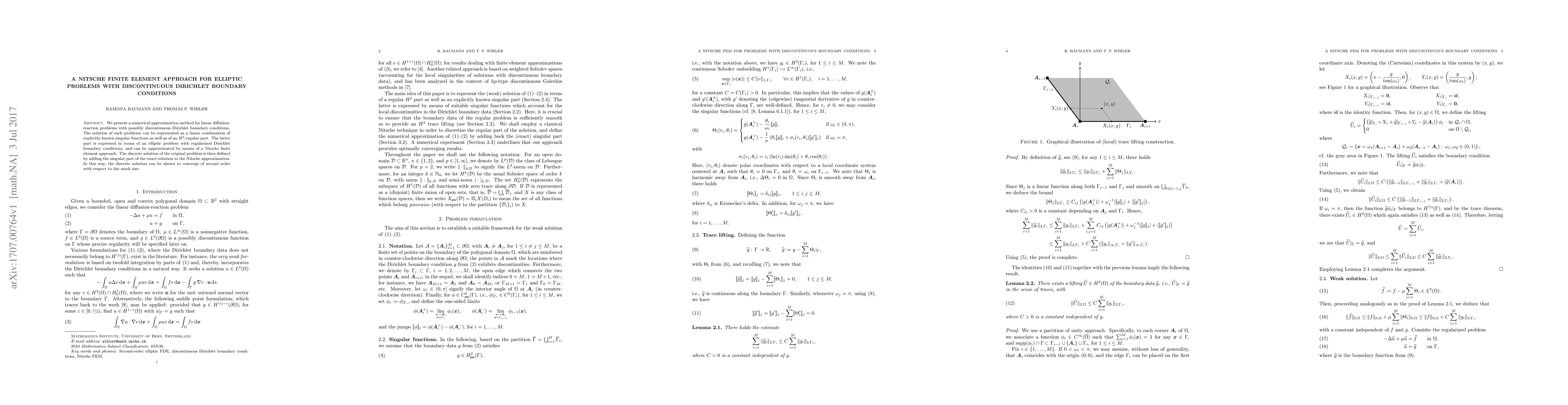 This paper proposes a Nitsche finite element method for solving linear diffusion-reaction problems with discontinuous Dirichlet boundary conditions. The method combines a Nitsche approach for the regular part and explicitly known singular functions to achieve second-order convergence.