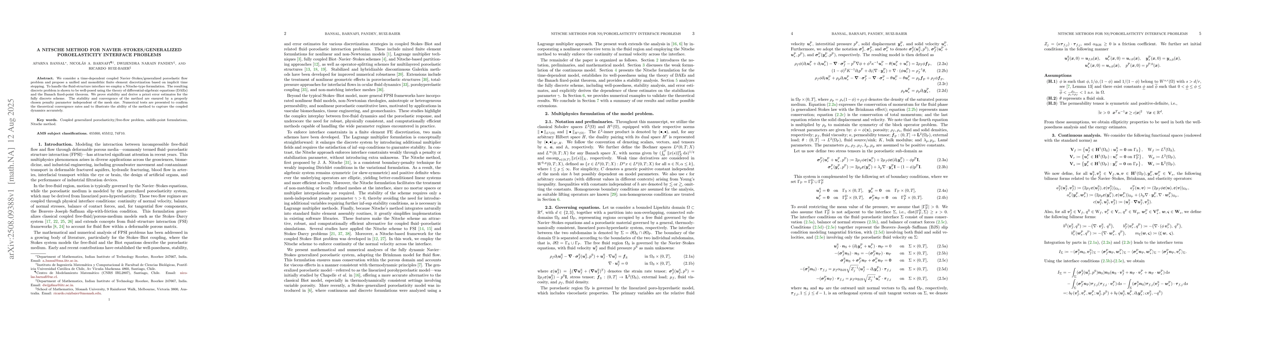 We consider a time-dependent coupled Navier--Stokes/generalized poroelastic flow problem and propose a unified and monolithic finite element discretization based on implicit time stepping. To handle the fluid-structure interface we employ a Nitsche-type formulation. The resulting discrete problem is shown to be well-posed using the theory of differential-algebraic equations (DAEs) and the Banach fixed-point theorem. We prove stability and derive a priori error estimates for the fully discrete scheme. The stability and convergence of the method are ensured by a properly chosen penalty parameter independent of the mesh size. Numerical tests are presented to confirm the theoretical convergence rates and to illustrate the ability of the method to capture the coupled dynamics accurately.