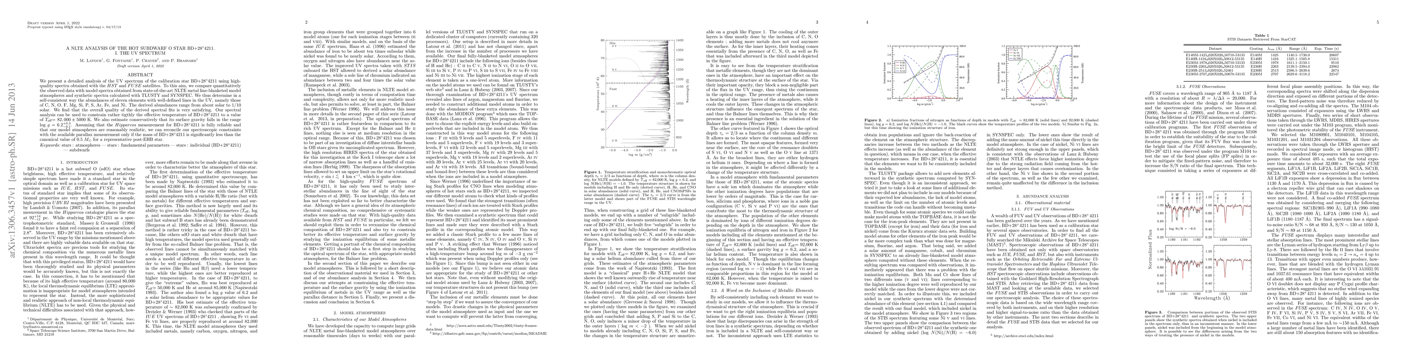 We present a detailed analysis of the UV spectrum of the calibration star Bd+28 4211 using high-quality spectra obtained with the HST and FUSE satellites. To this aim, we compare quantitatively the observed data with model spectra obtained from state-of-the-art NLTE metal line-blanketed model atmospheres and synthetic spectra calculated with TLUSTY and SYNSPEC. We thus determine in a self-consistent way the abundances of eleven elements with well-defined lines in the UV, namely those of C, N, O, F, Mg, Si, P, S, Ar, Fe, and Ni. The derived abundances range from about solar to 1/10 solar. We find that the overall quality of the derived spectral fits is very satisfying. Our spectral analysis can be used to constrain rather tigthly the effective temperature of Bd+28 to a value of teff = 82,000 +/- 5000 K. We also estimate conservatively that its surface gravity falls in the range log g = 6.2 -0.1/+0.3. Assuming that the Hipparcos measurement for Bd+28 is fully reliable and that our model atmospheres are reasonably realistic, we can reconcile our spectroscopic constraints with the available parallax measurement only if the mass of Bd+28 is significantly less than the canonical value of 0.5 msun for a representative post-EHB star.