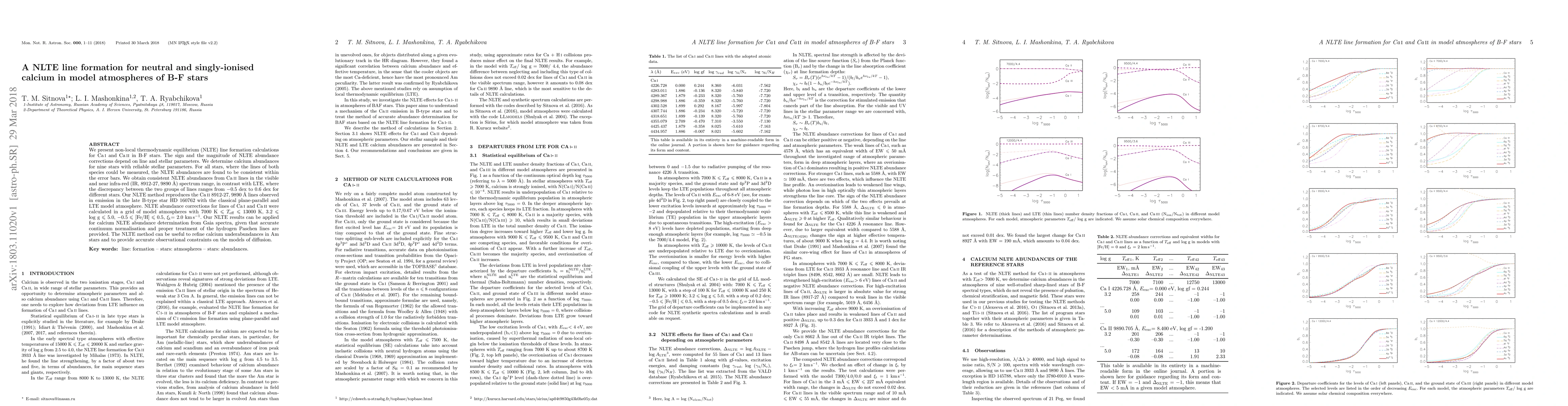 This paper presents non-local thermodynamic equilibrium (NLTE) line formation calculations for Ca I and Ca II in B-F stars, finding consistent NLTE abundances across different spectral lines and suggesting the method's applicability for refining calcium abundances in Am stars and improving diffusion models.
