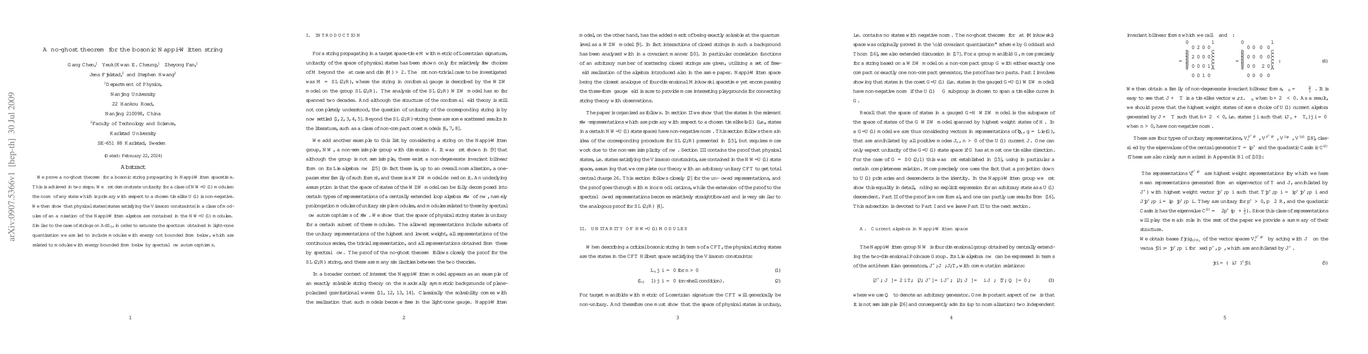 Summary: The paper proves a no-ghost theorem for a bosonic string in Nappi-Witten spacetime, demonstrating unitarity through non-negative norms of primary states and showing that physical states satisfying Virasoro constraints are part of a class of NW/U(1) modules, requiring the inclusion of unbounded energy modules for complete saturation of the spectrum.