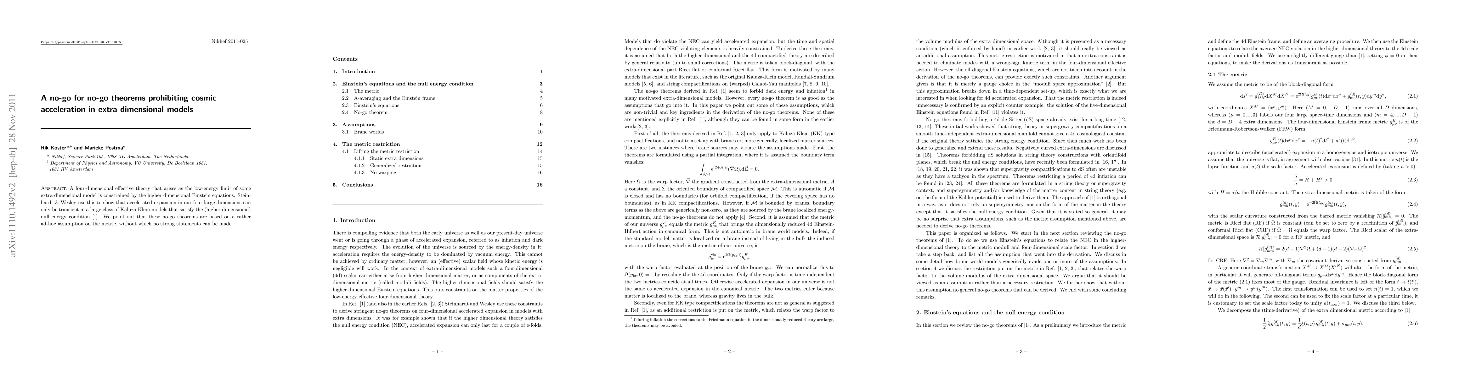 A four-dimensional effective theory that arises as the low-energy limit of some extra-dimensional model is constrained by the higher dimensional Einstein equations. Steinhardt & Wesley use this to show that accelerated expansion in our four large dimensions can only be transient in a large class of Kaluza-Klein models that satisfy the (higher dimensional) null energy condition [1]. We point out that these no-go theorems are based on a rather ad-hoc assumption on the metric, without which no strong statements can be made.