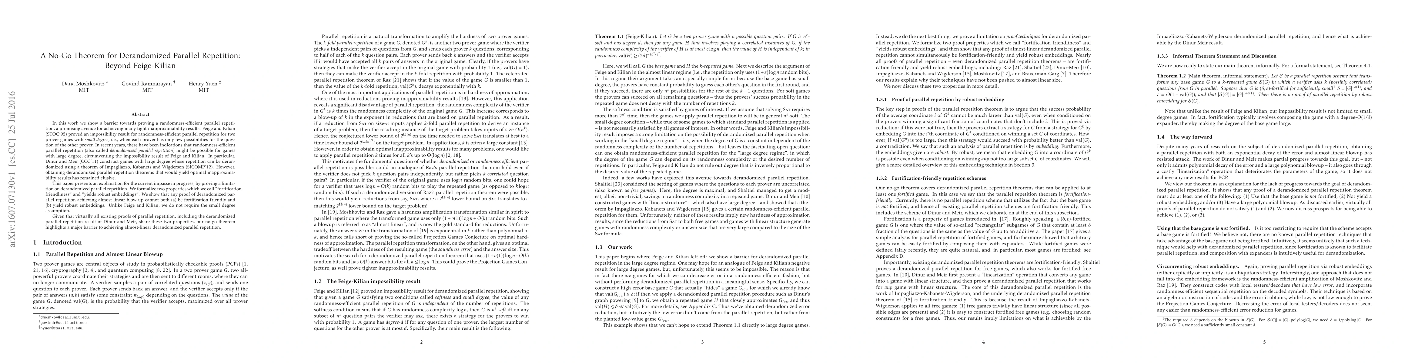This paper demonstrates a barrier to proving a randomness-efficient parallel repetition, showing that any proof achieving almost-linear blow-up cannot simultaneously be fortification-friendly and yield robust embeddings, which applies beyond the small degree assumption. This highlights a significant obstacle to achieving derandomized parallel repetition and optimal inapproximability results.