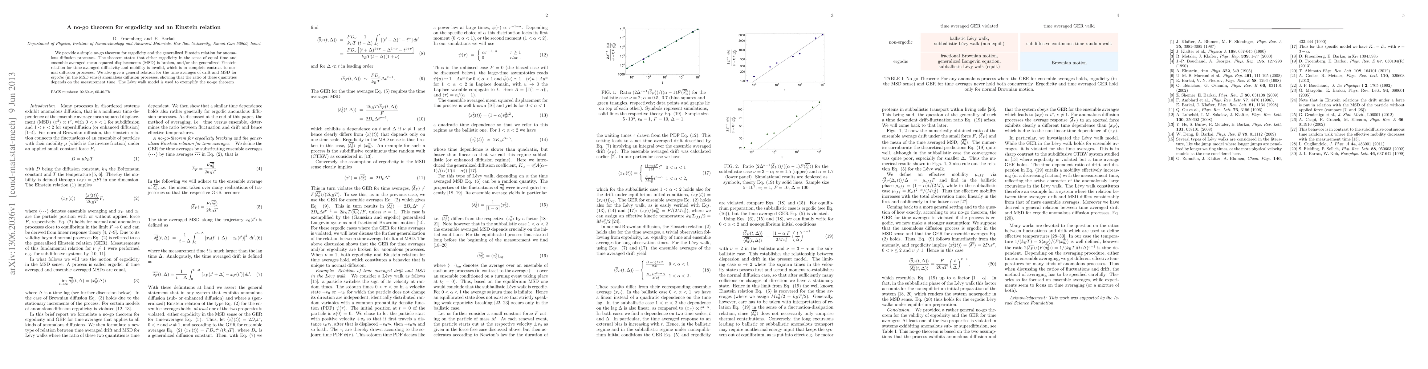 This paper presents a no-go theorem demonstrating that ergodicity and the generalized Einstein relation cannot hold simultaneously for anomalous diffusion processes, contrasting with normal diffusion. It also provides a general relation for ergodic anomalous diffusion, showing time-dependent ratios of drift and mean squared displacements. The Lévy walk model illustrates these findings.