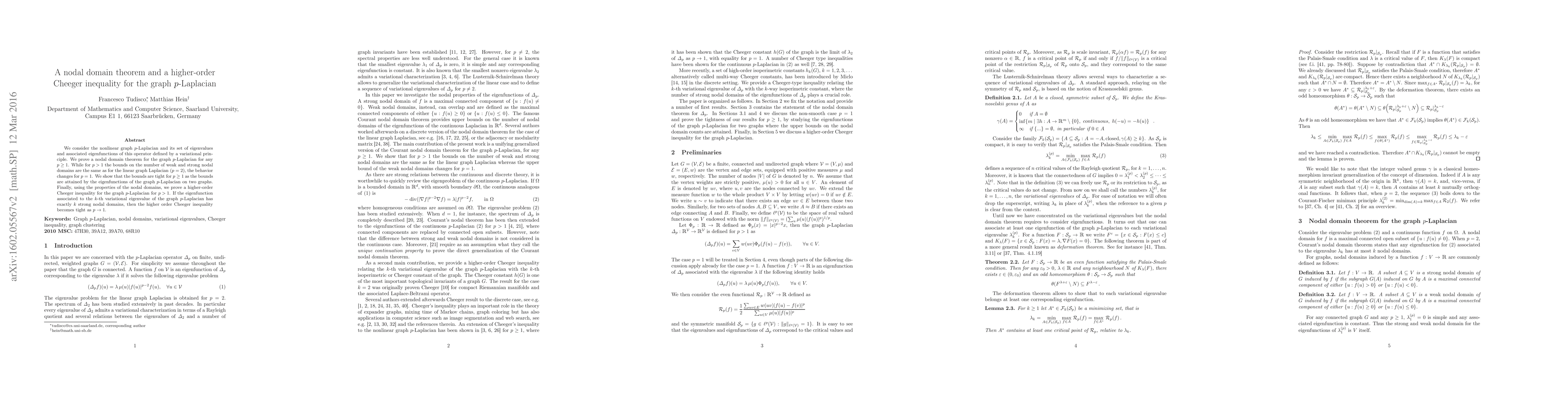 This paper proves a nodal domain theorem for the graph $p$-Laplacian for any $p\geq 1$, showing tight bounds for $p\geq 1$ and a higher-order Cheeger inequality for $p>1$. The behavior differs for $p=1$ compared to $p>1$.