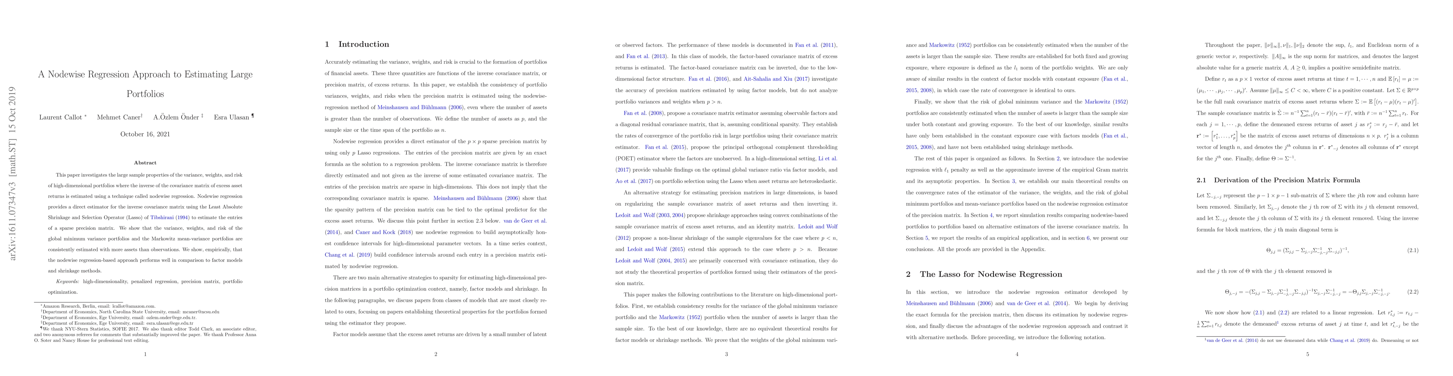 This paper proposes a nodewise regression approach using Lasso to estimate the inverse covariance matrix for large portfolios, demonstrating consistent estimation of variance, weights, and risk even with more assets than observations. Empirically, it shows superior performance compared to factor models and shrinkage methods.