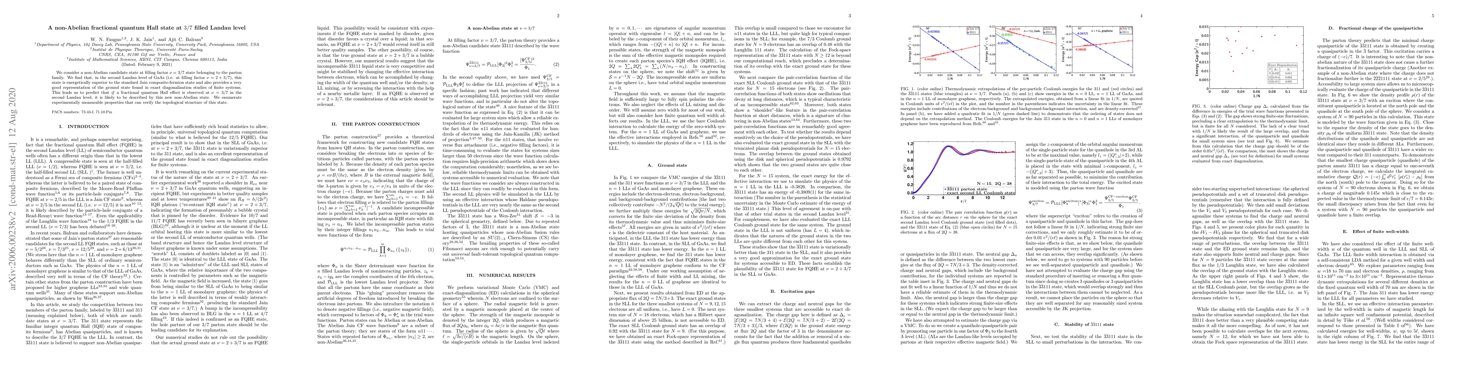 This paper proposes a non-Abelian fractional quantum Hall state at the filling factor $\nu=3/7$, suggesting it is energetically superior to the Jain state in the second Landau level of GaAs. It predicts that this new state could describe the observed quantum Hall effect at $\nu=3/7$ and outlines measurable properties to verify its topological structure.