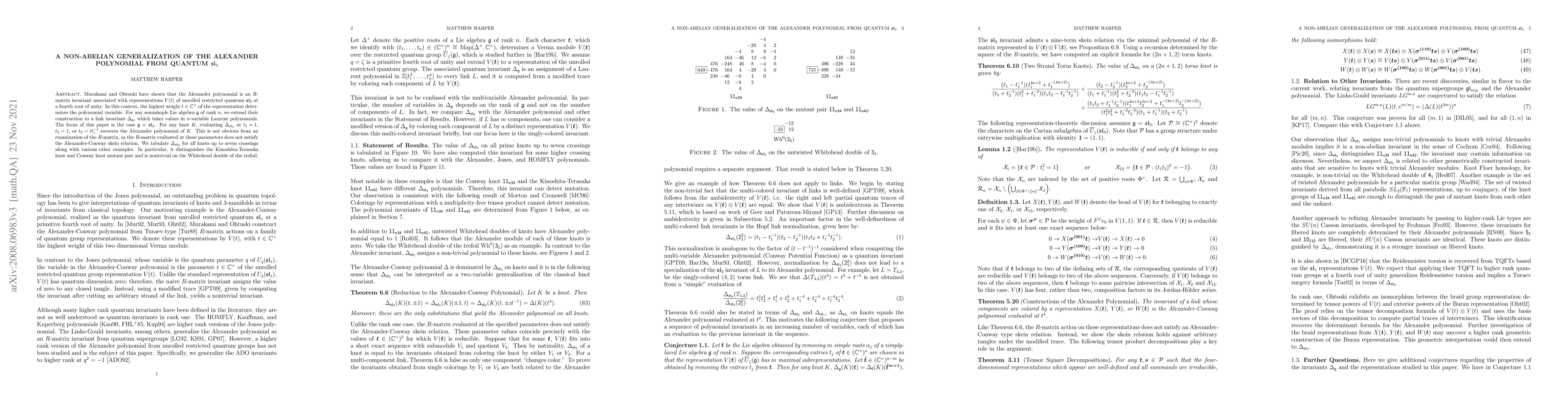 Murakami and Ohtsuki have shown that the Alexander polynomial is an $R$-matrix invariant associated with representations $V(t)$ of unrolled restricted quantum $\mathfrak{sl}_2$ at a fourth root of unity. In this context, the highest weight $t\in\mathbb{C}^\times$ of the representation determines the polynomial variable. For any semisimple Lie algebra $\mathfrak{g}$ of rank $n$, we extend their construction to a link invariant $\Delta_{\mathfrak{g}}$, which takes values in $n$-variable Laurent polynomials. The focus of this paper is the case $\mathfrak{g}=\mathfrak{sl}_3$. For any knot $K$, evaluating $\Delta_{\mathfrak{sl}_3}$ at ${t_1=1}$, ${t_2=1}$, or ${t_2= it_1^{-1}}$ recovers the Alexander polynomial of $K$. This is not obvious from an examination of the $R$-matrix, as the $R$-matrix evaluated at these parameters does not satisfy the Alexander-Conway skein relation. We tabulate $\Delta_{\mathfrak{sl}_3}$ for all knots up to seven crossings along with various other examples. In particular, it distinguishes the Kinoshita-Terasaka knot and Conway knot mutant pair and is nontrivial on the Whitehead double of the trefoil.