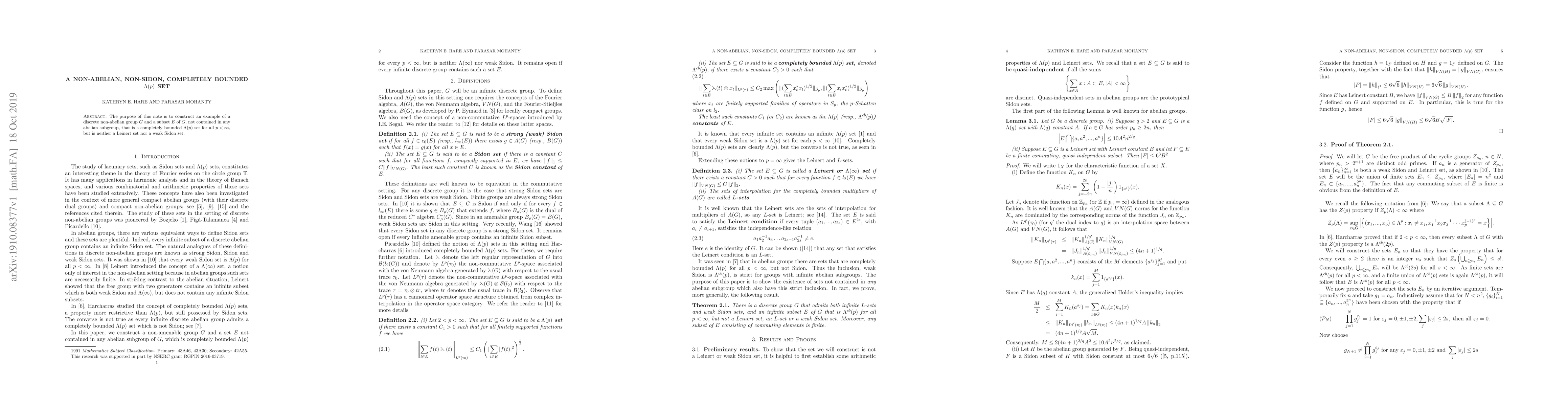 Researchers constructed a discrete non-abelian group G with a subset E that is completely bounded as a lambda(p) set for all positive p, but is neither abelian nor Sidon.