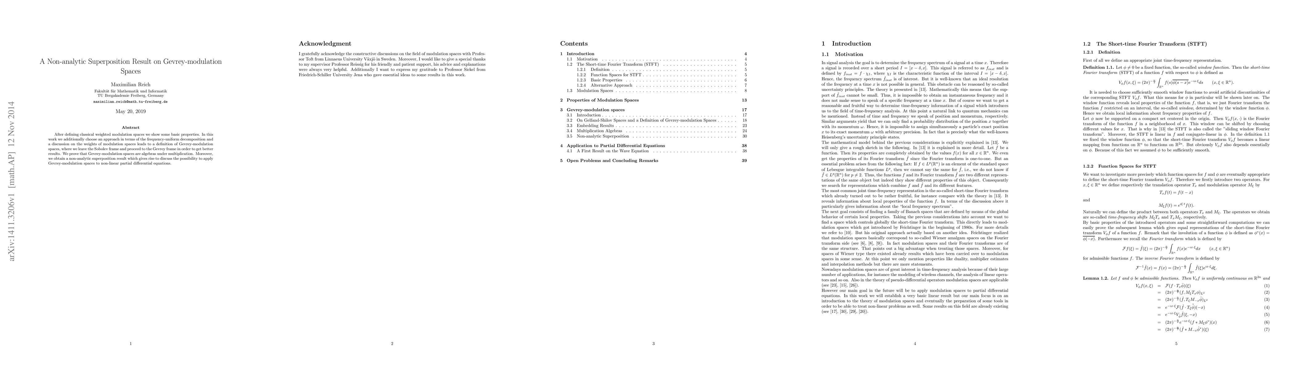After defining classical weighted modulation spaces we show some basic properties. In this work we additionally choose an approach in terms of the frequency-uniform decomposition and a discussion on the weights of modulation spaces leads to a definition of Gevrey-modulation spaces, where we leave the Sobolev frame and proceed to the Gevrey frame in order to get better results. We prove that Gevrey-modulation spaces are algebras under multiplication. Moreover, we obtain a non-analytic superposition result which gives rise to discuss the possibility to apply Gevrey-modulation spaces to non-linear partial differential equations.