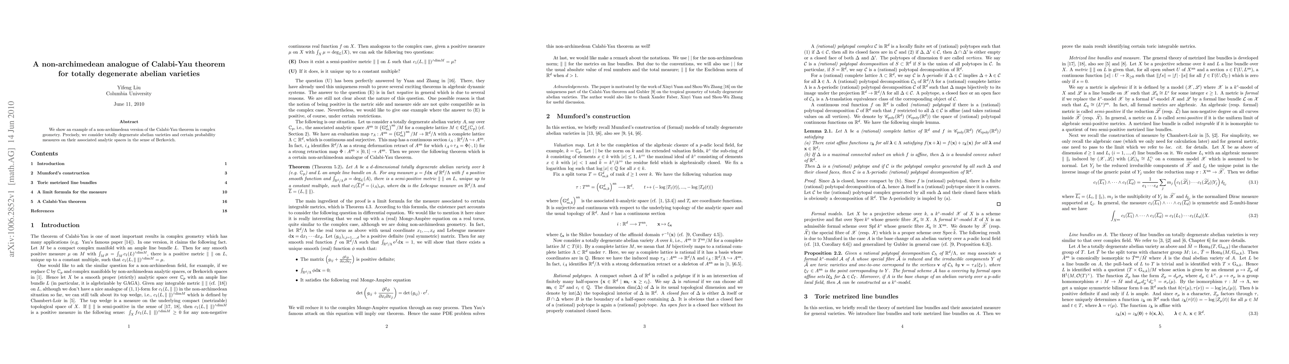 Summary: This paper presents a non-archimedean analogue of the Calabi-Yau theorem, demonstrating its application to totally degenerate abelian varieties and their associated Berkovich analytic spaces through specific probability measures.