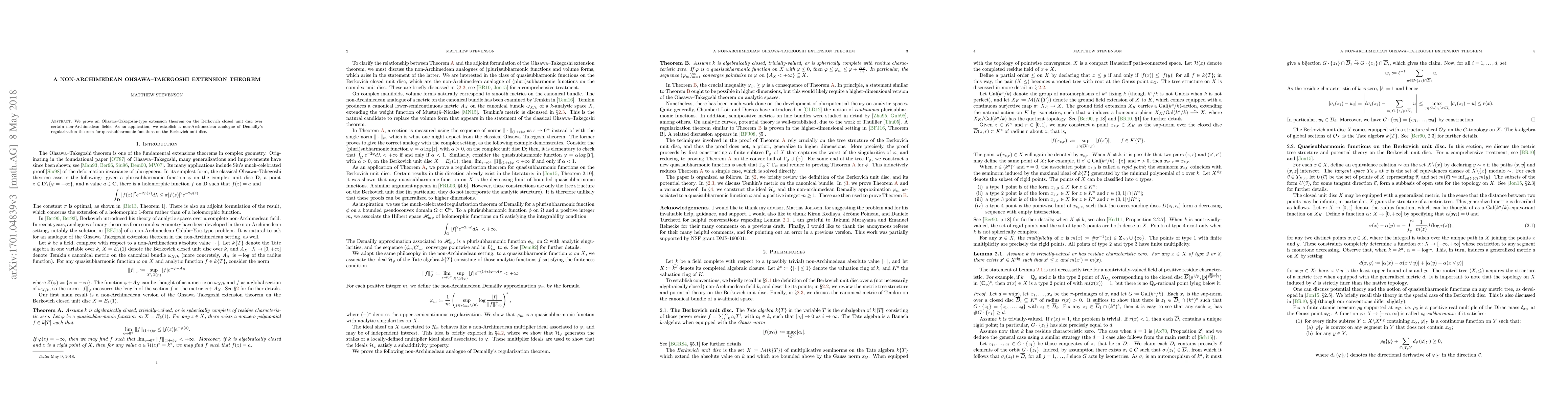 The paper proves a non-Archimedean extension theorem akin to the Ohsawa-Takegoshi theorem for the Berkovich closed unit disc over a complete non-Archimedean field and applies it to establish a non-Archimedean version of Demailly's regularization theorem for quasisubharmonic functions.