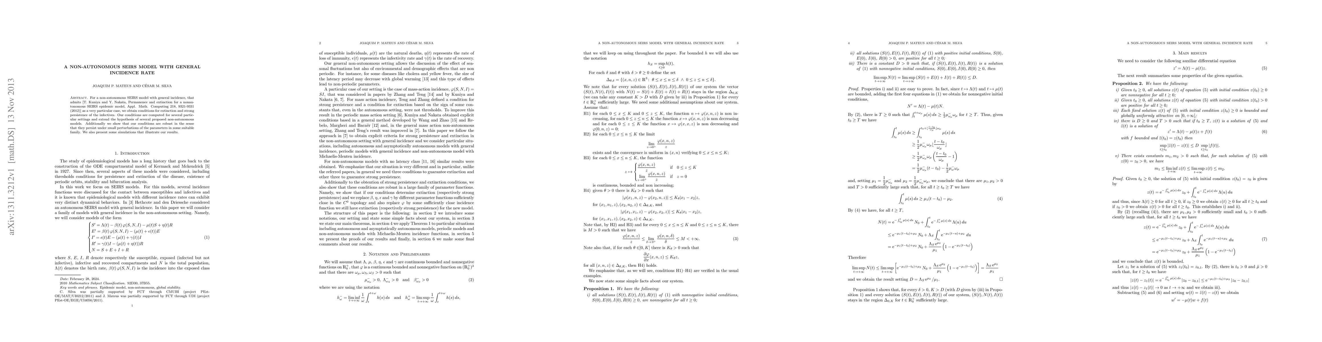 This paper investigates a non-autonomous SEIRS model with a general incidence rate, deriving conditions for the extinction and strong persistence of infectives. The study extends existing hypotheses and demonstrates robustness under parameter perturbations, supported by illustrative simulations.