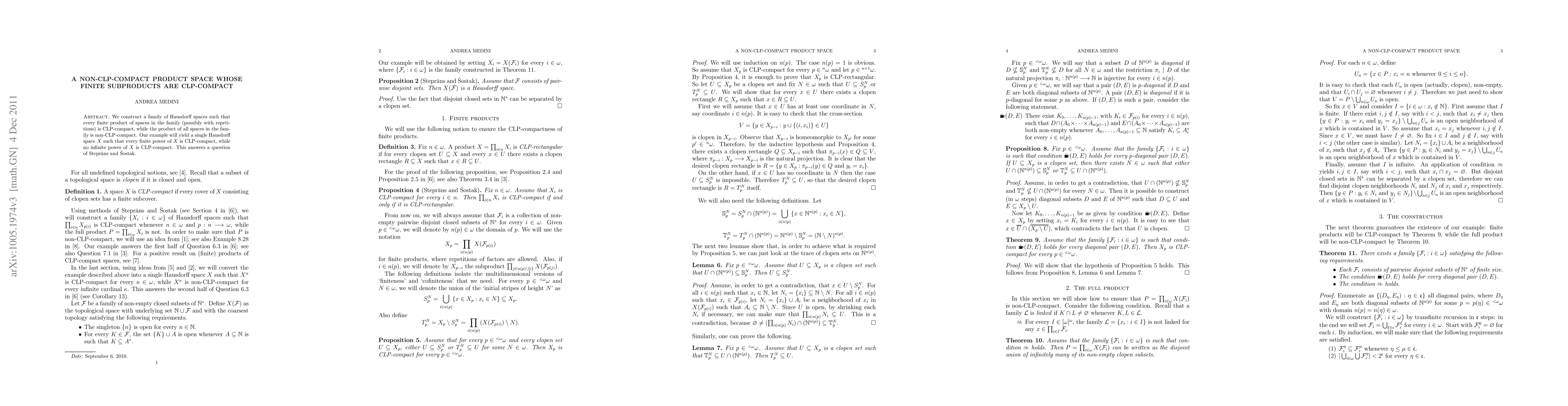 We construct a family of Hausdorff spaces such that every finite product of spaces in the family (possibly with repetitions) is CLP-compact, while the product of all spaces in the family is non-CLP-compact. Our example will yield a single Hausdorff space $X$ such that every finite power of $X$ is CLP-compact, while no infinite power of $X$ is CLP-compact. This answers a question of Stepr\={a}ns and \v{S}ostak.