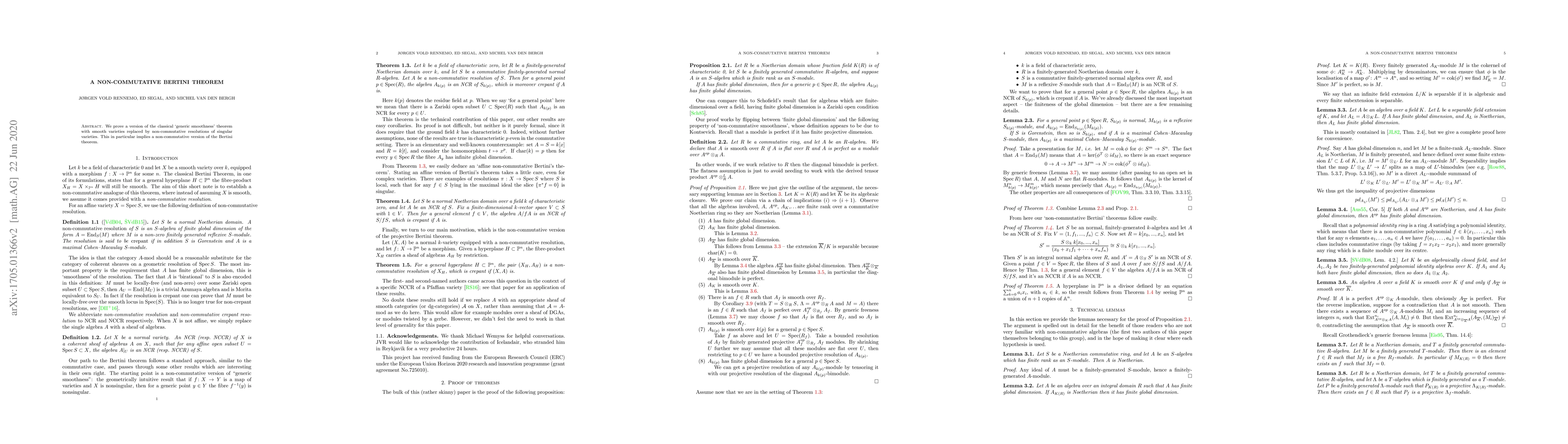 This paper establishes a non-commutative version of Bertini's theorem, replacing classical smooth varieties with non-commutative resolutions of singular varieties, thus extending the 'generic smoothness' principle to this new setting.