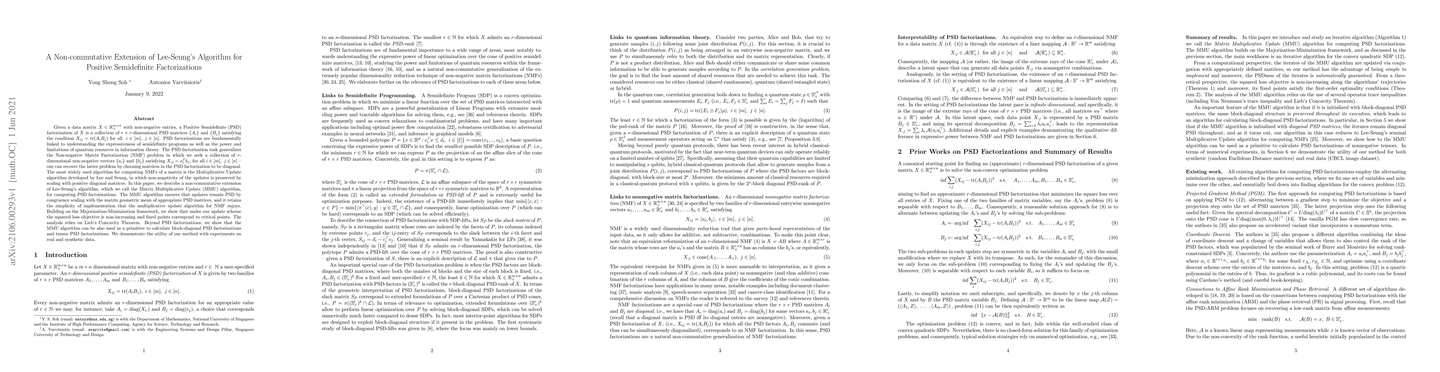 This paper introduces a non-commutative extension of Lee-Seung's algorithm called the Matrix Multiplicative Update (MMU) algorithm for computing Positive Semidefinite (PSD) factorizations of nonnegative matrices. The MMU algorithm maintains PSD properties through congruence scaling and retains the simplicity of the original Lee-Seung algorithm, demonstrating effectiveness on both block-diagonal and tensor PSD factorizations with experimental validation.