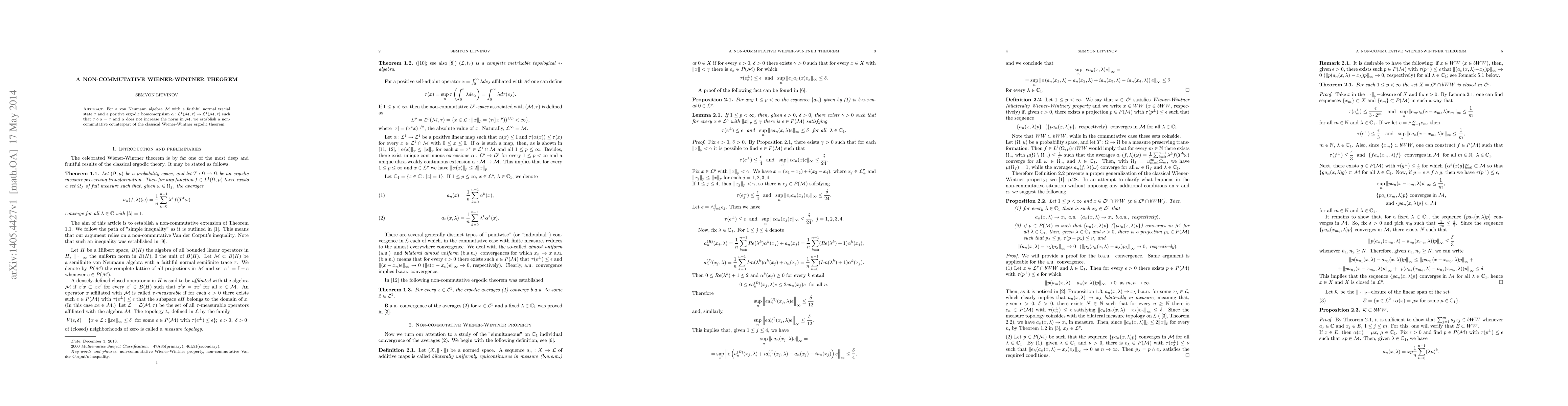 For a von Neumann algebra $\cal M$ with a faithful normal tracial state $\tau$ and a positive ergodic homomorphism $\alpha:\mathcal L^1(\mathcal M,\tau)\to \mathcal L^1(\mathcal M,\tau)$ such that $\alpha$ does not increase the norm in $\mathcal M$ and $\tau \circ \alpha=\tau$, we establish a non-commutative counterpart of the classical Wiener-Wintner Theorem.