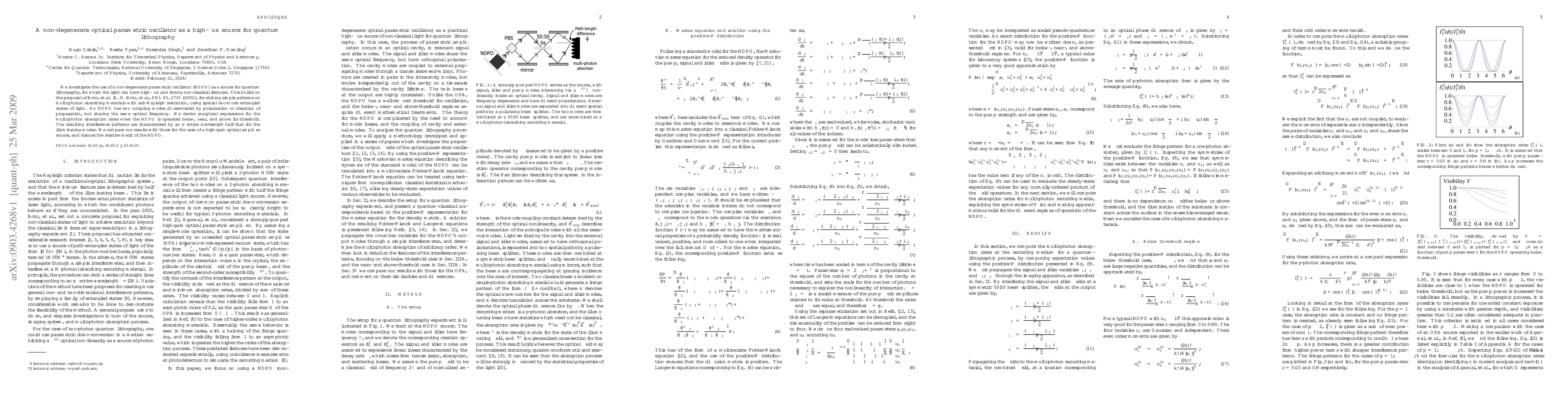 We investigate the use of a non-degenerate parametric oscillator (NDPO) as a source for quantum lithography, for which the light can have high-flux and strong non-classical features. This builds on the proposal of Boto, et al. [A. N. Boto, et al., PRL (85), 2733 (2000)], for etching simple patterns on multi-photon absorbing materials with sub-Rayleigh resolution, using special two-mode entangled states of light. An NDPO has two outgoing modes differentiated by polarization or direction of propagation, but sharing the same optical frequency. We derive analytical expressions for the multi-photon absorption rates when the NDPO is operated below, near, and above its threshold. The resulting interference patterns are characterized by an effective wavelength half that for the illuminating modes. We compare our results with those for the case of a high-gain optical amplifier source, and discuss the relative merit of the NDPO.