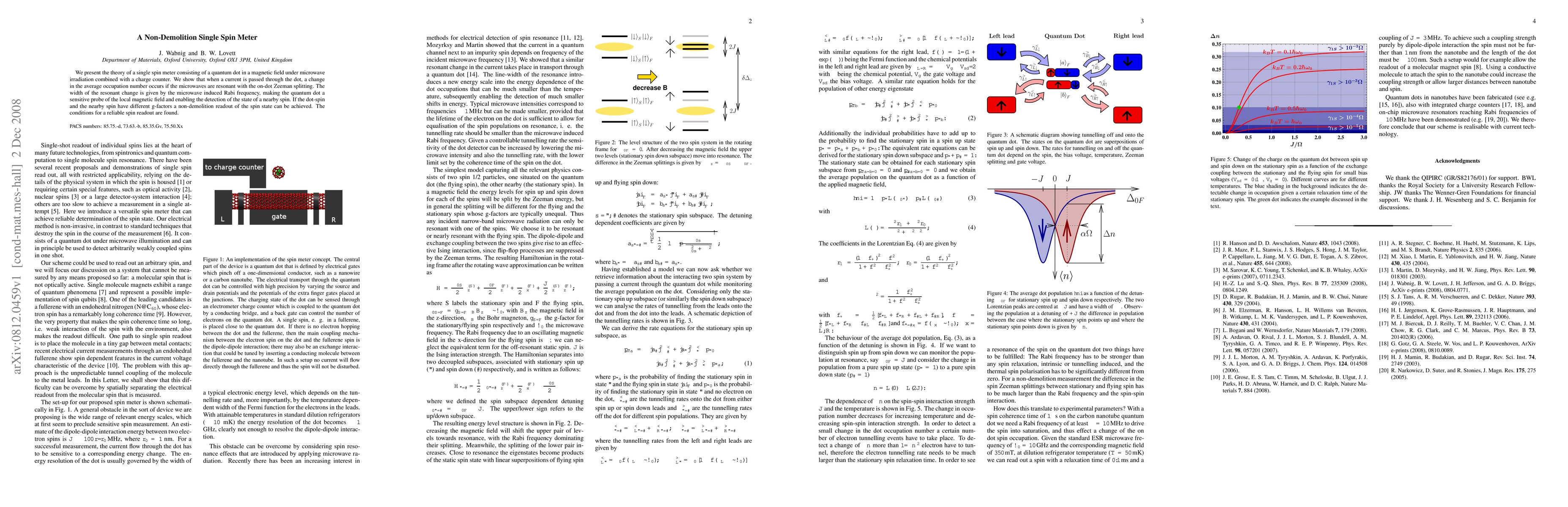 This paper proposes a non-demolition single spin meter using a quantum dot in a magnetic field and microwave irradiation, demonstrating that a change in the average occupation number of the quantum dot can detect nearby spin states, with non-demolition readout possible when different g-factors are involved. The method relies on the microwave-induced Rabi frequency for sensitivity.