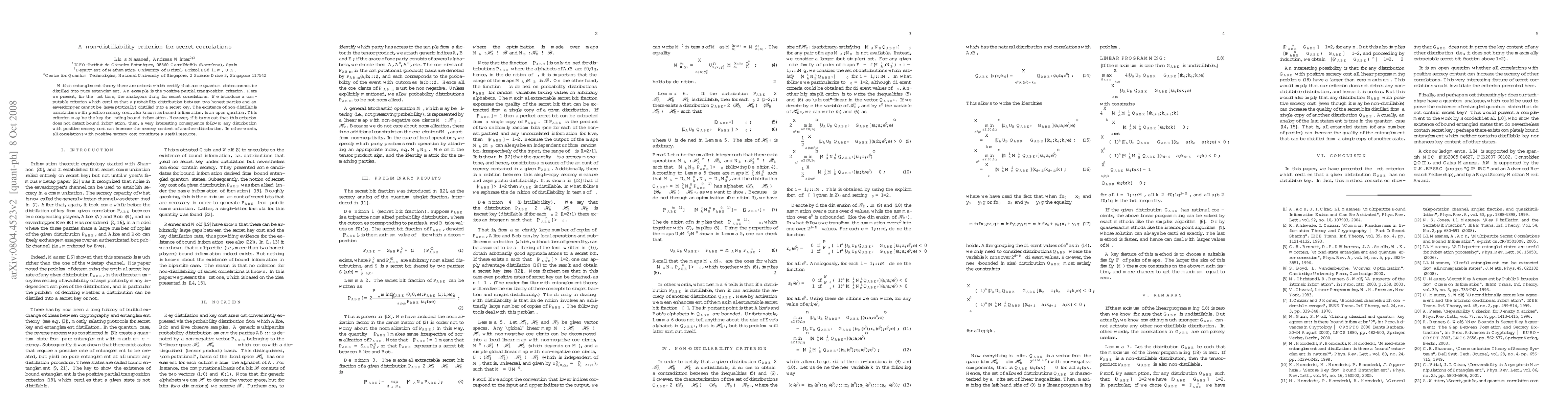 This paper introduces a new criterion to determine if secret correlations cannot be distilled into a secret key, potentially aiding the discovery of bound information. If the criterion fails to detect bound information, it implies that all correlations with positive secrecy cost are valuable resources.