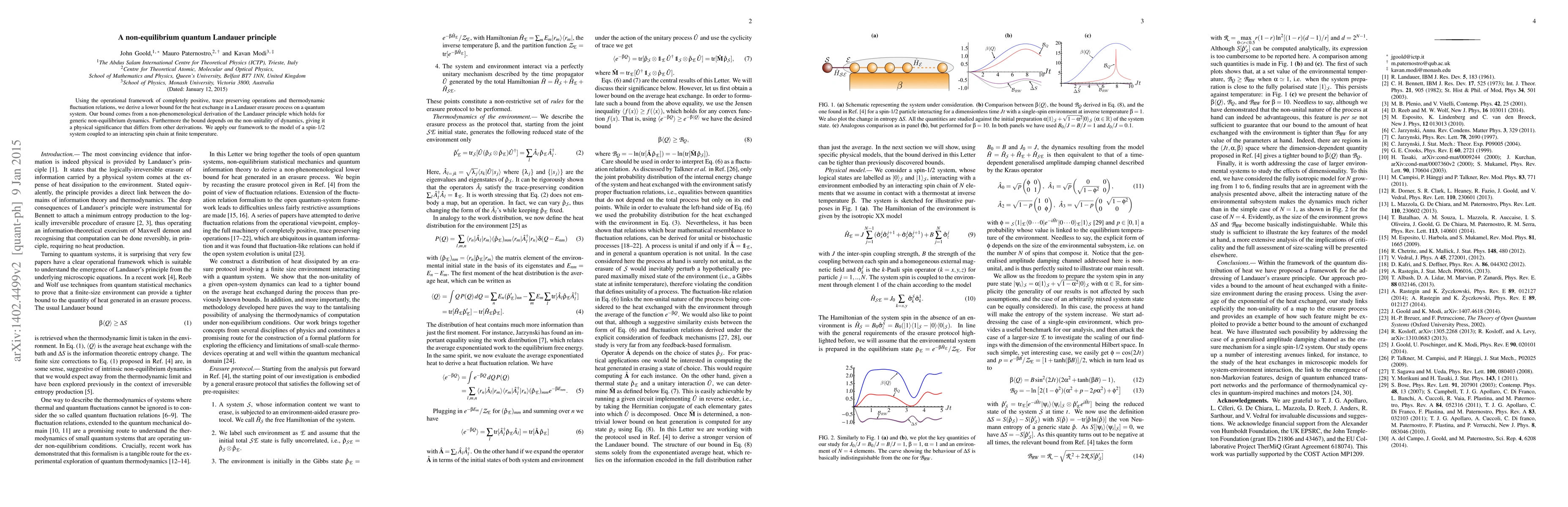 Using the operational framework of completely positive, trace preserving operations and thermodynamic fluctuation relations, we derive a lower bound for the heat exchange in a Landauer erasure process on a quantum system. Our bound comes from a non-phenomenological derivation of the Landauer principle which holds for generic non-equilibrium dynamics. Furthermore the bound depends on the non-unitality of dynamics, giving it a physical significance that differs from other derivations. We apply our framework to the model of a spin-1/2 system coupled to an interacting spin chain at finite temperature.
