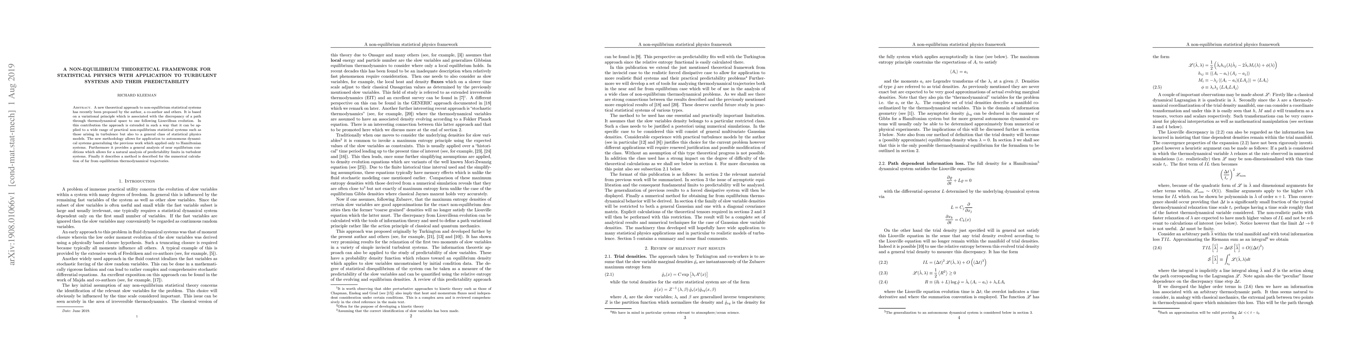 A new theoretical approach to non-equilibrium statistical systems has recently been proposed by the author, a co-author and others. It is based on a variational principle which is associated with the discrepancy of a path through thermodynamical space to one following Liouvillean evolution. In this contribution the approach is extended in such a way that it can be applied to a wide range of practical non-equilibrium statistical systems such as those arising in turbulence but also to a general class of statistical physics models. The new methodology allows for application to autonomous dynamical systems generalizing the previous work which applied only to Hamiltonian systems. Furthermore it provides a general analysis of near equilibrium conditions which allows for a natural analysis of predictability limits in turbulent systems. Finally it describes a method is described for the numerical calculation of far from equilibrium thermodynamical trajectories.