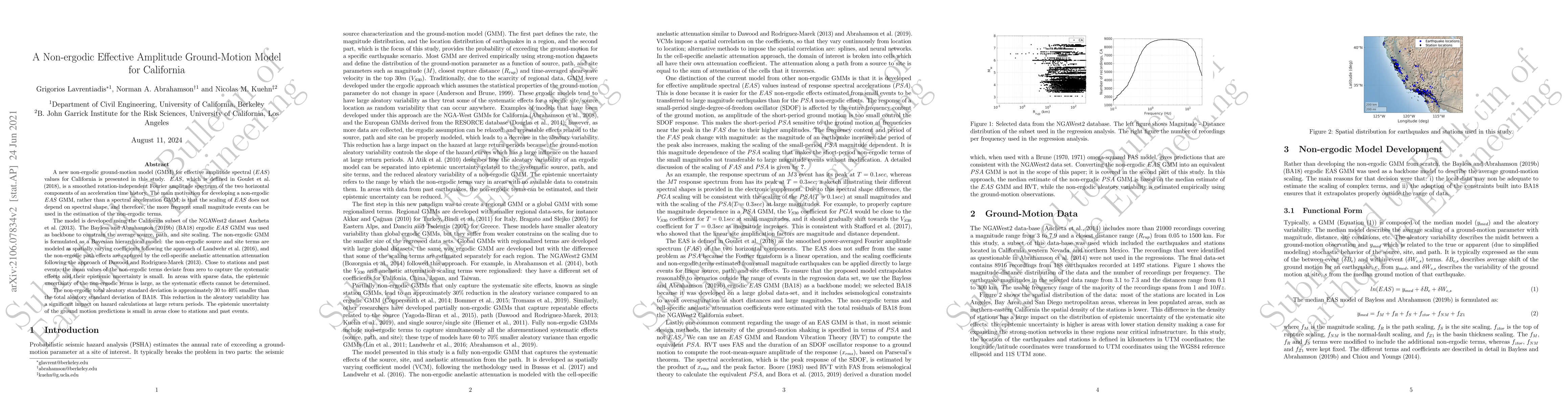 This study presents a non-ergodic effective amplitude spectral (EAS) ground-motion model for California, which reduces aleatory variability by approximately 30-40% compared to existing models. The model captures systematic effects and has small epistemic uncertainty near stations and past events.