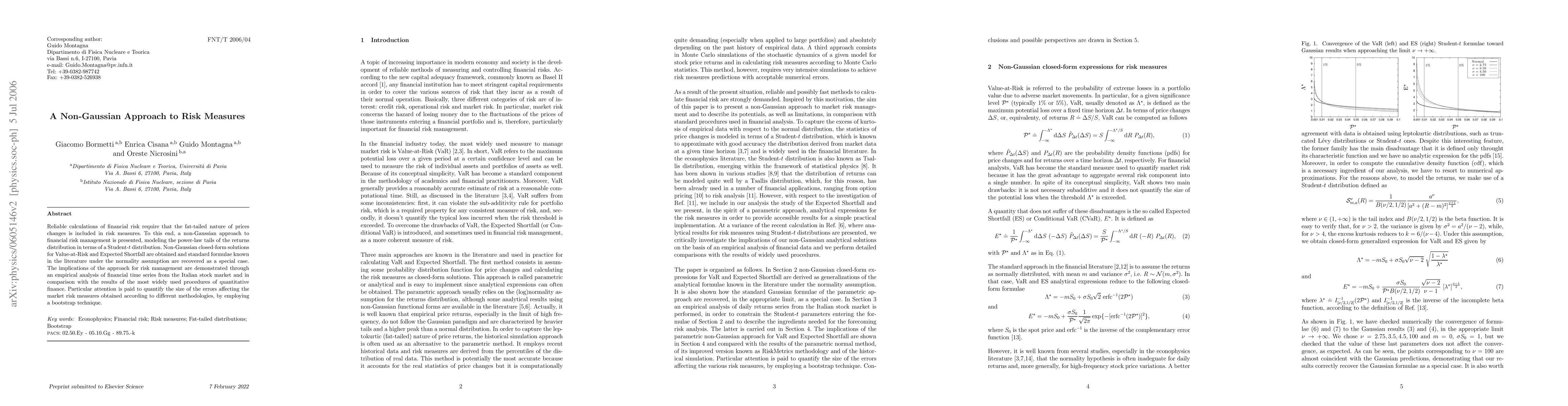 This paper presents a non-Gaussian method for financial risk measures, using a Student-t distribution to model fat-tail returns. It derives closed-form solutions for Value-at-Risk and Expected Shortfall, demonstrating their effectiveness through an empirical analysis of Italian stock market data compared to traditional methods.