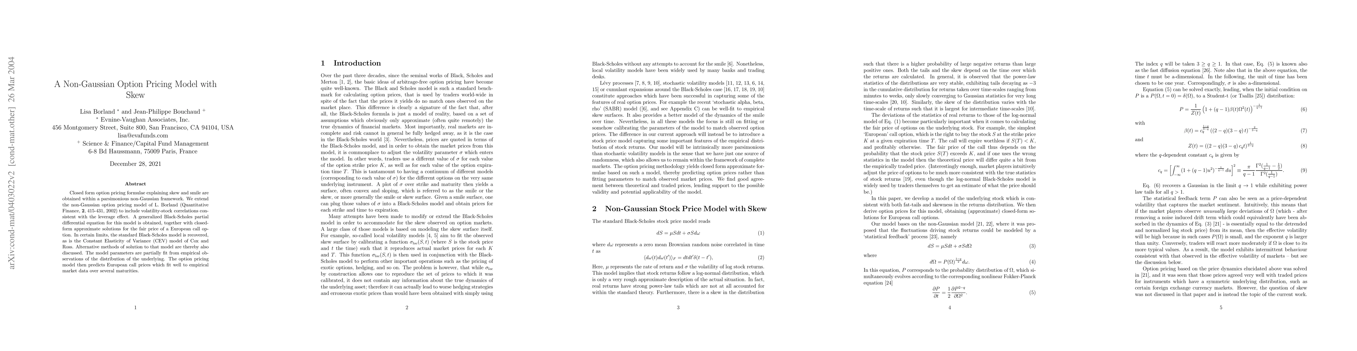 This work builds upon Borland's (2002) non-Gaussian model by extending it to include volatility-stock correlations, providing a more comprehensive approach to option pricing that captures skew and smile phenomena.