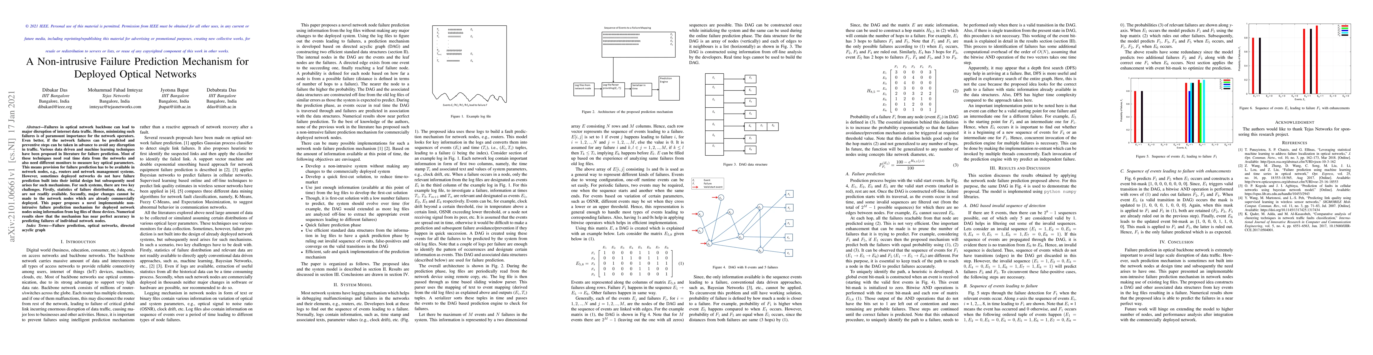 This paper proposes a non-intrusive failure prediction mechanism for deployed optical networks using log file data, addressing the challenge of predicting failures without requiring changes to existing network nodes. The method demonstrates near perfect accuracy in predicting individual network node failures.