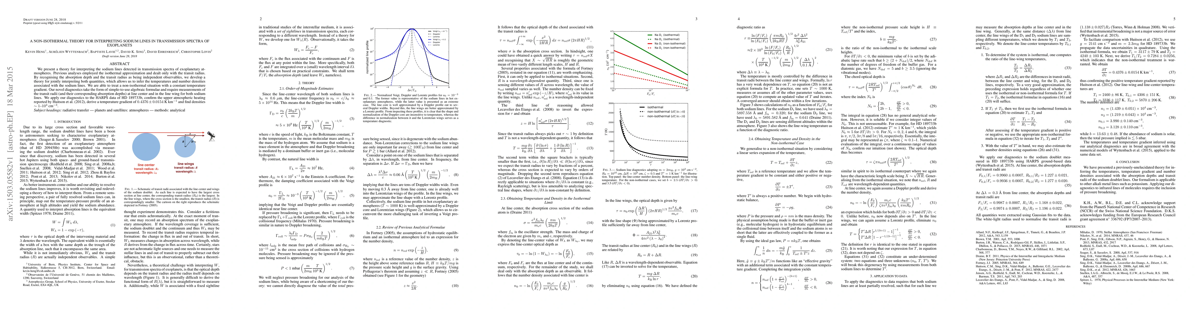This paper develops a non-isothermal theory for interpreting sodium lines in exoplanet transmission spectra, moving beyond isothermal approximations. It provides algebraic formulae to jointly analyze transit radii and absorption depths, revealing temperature gradients and number densities in exoplanetary atmospheres.
