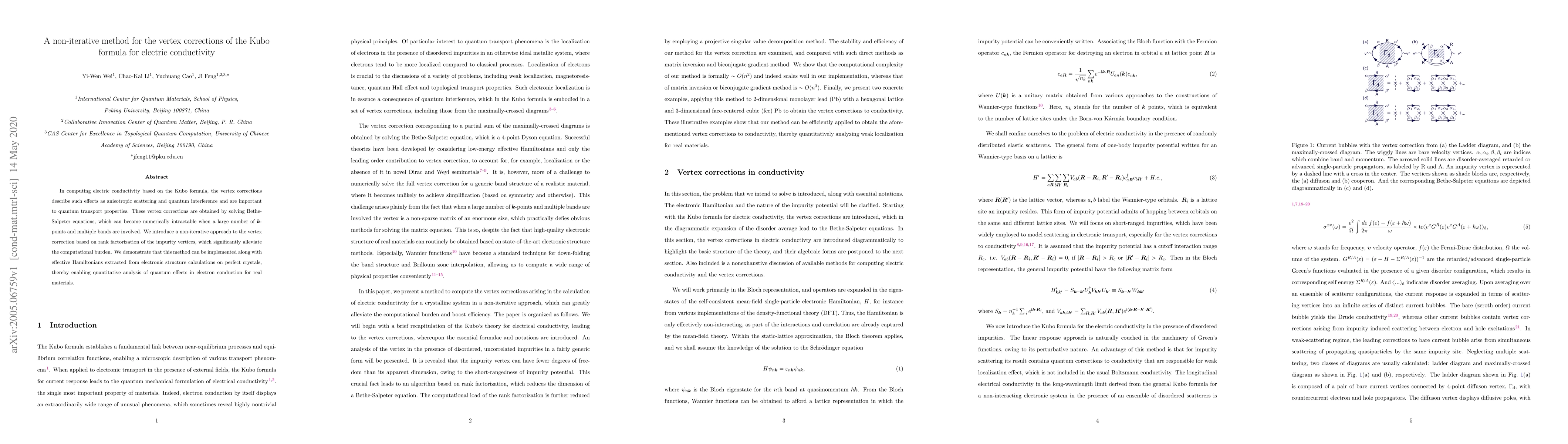 In computing electric conductivity based on the Kubo formula, the vertex corrections describe such effects as anisotropic scattering and quantum interference and are important to quantum transport properties. These vertex corrections are obtained by solving Bethe-Salpeter equations, which can become numerically intractable when a large number of k-points and multiple bands are involved. We introduce a non-iterative approach to the vertex correction based on rank factorization of the impurity vertices, which significantly alleviate the computational burden. We demonstrate that this method can be implemented along with effective Hamiltonians extracted from electronic structure calculations on perfect crystals, thereby enabling quantitative analysis of quantum effects in electron conduction for real materials.
