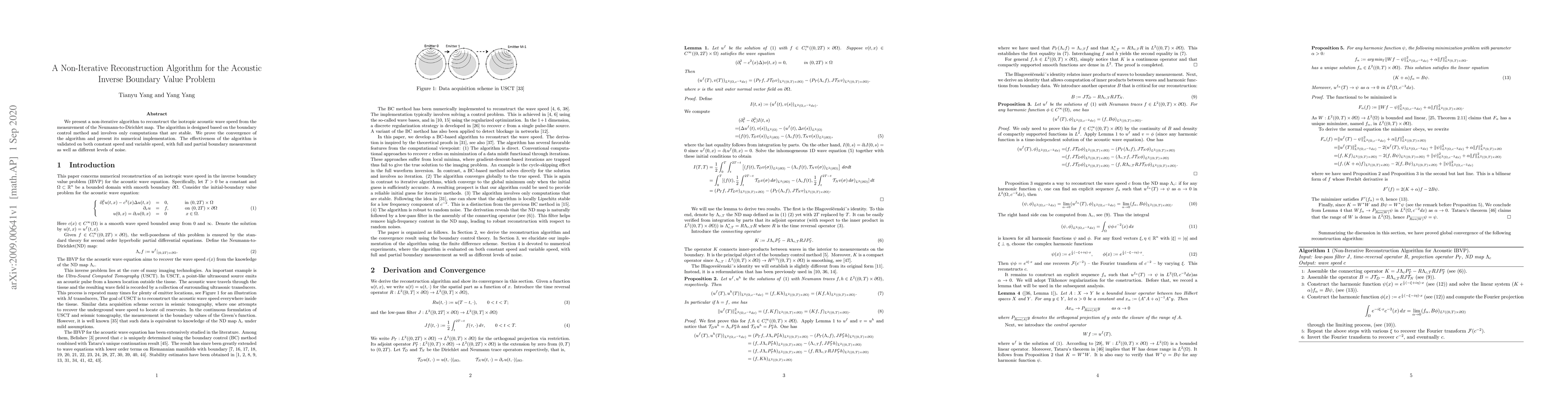 This paper introduces a non-iterative algorithm for reconstructing the acoustic wave speed using the Neumann-to-Dirichlet map, based on the boundary control method. The algorithm is proven to converge and demonstrated through numerical simulations under various conditions.