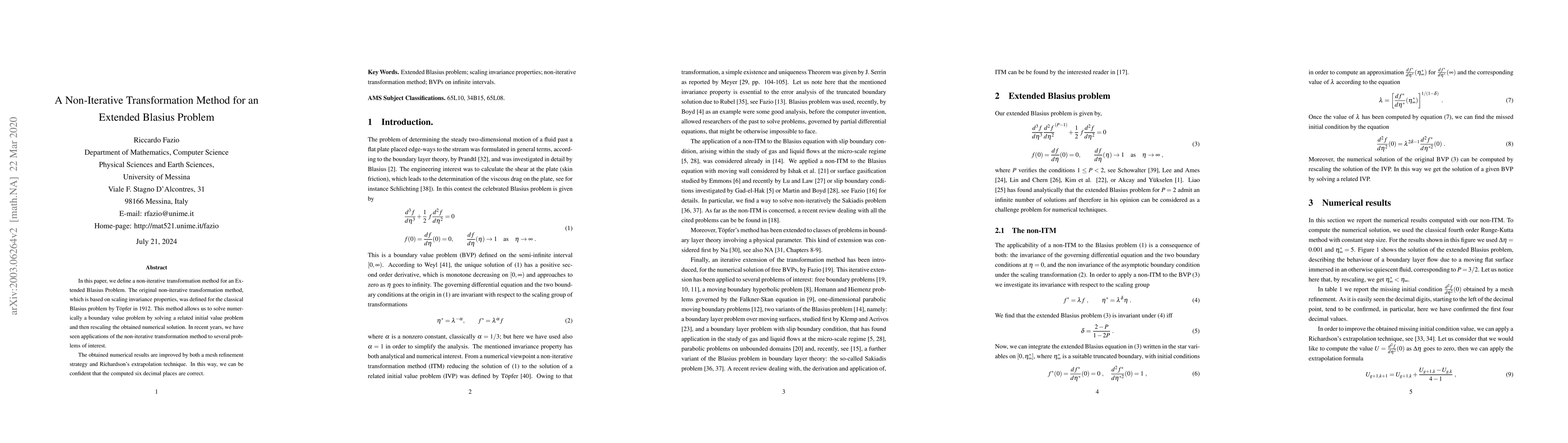 Researchers develop a non-iterative transformation method to solve the Extended Blasius Problem, improving numerical results through mesh refinement and Richardson's extrapolation.