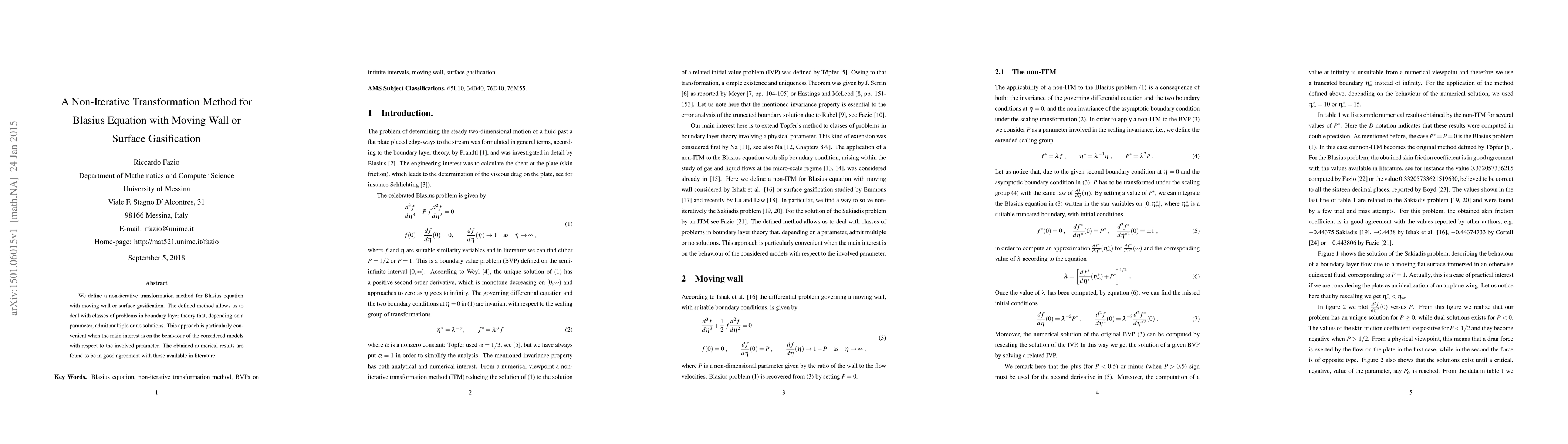 We define a non-iterative transformation method for Blasius equation with moving wall or surface gasification. The defined method allows us to deal with classes of problems in boundary layer theory that, depending on a parameter, admit multiple or no solutions. This approach is particularly convenient when the main interest is on the behaviour of the considered models with respect to the involved parameter. The obtained numerical results are found to be in good agreement with those available in literature.